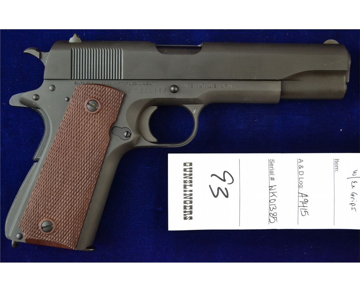 COLT 1911 A1 CAME OUT AS AN EXACT REPRO OF COLT WW2 GUN AS NEW IN BOX WITH EXTRA GRIPS A9415 SERIAL WK01385