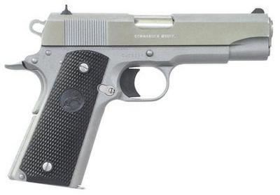 FAMILY:1911 Style Pistol Series MODEL:1991 Commander TYPE:Semi-Auto Pistol ACTION:Single Action FINISH:Stainless STOCK/FRAME:Steel Frame STOCK/GRIPS:Black Rubber CALIBER/GAUGE:45 ACP CAPACITY:8+1 # OF MAGS:2 BARREL:4.25" OVERALL LENGTH:7.75" SIGHTS:Fixed ADDL INFO:Checkered Rubber Composite