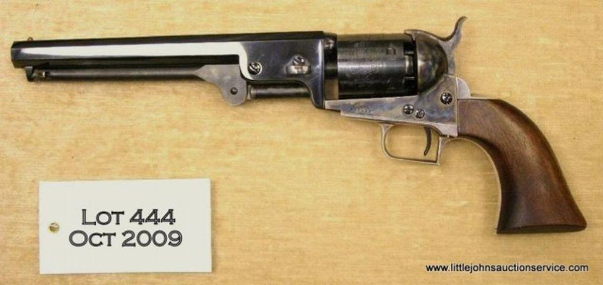 COLT 2nd Model Squareback Navy revolver, # 16334, .36 cal., New Powder Series. Fine to near excellent condition showing 98-99% plus original condition. No evidence of firing, slight handling and storage marks. Est. $350-$700.