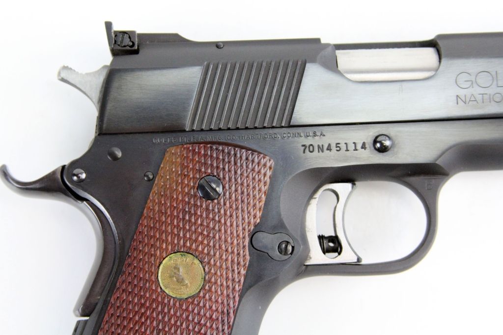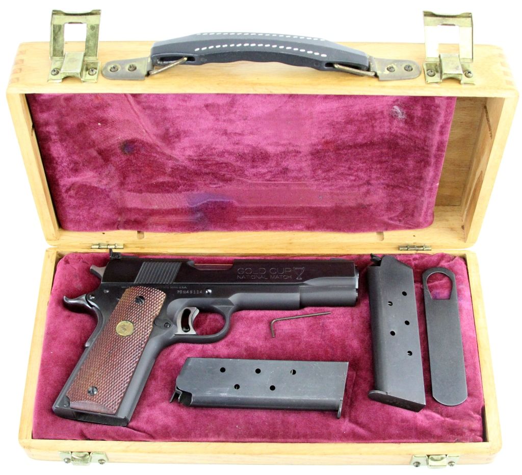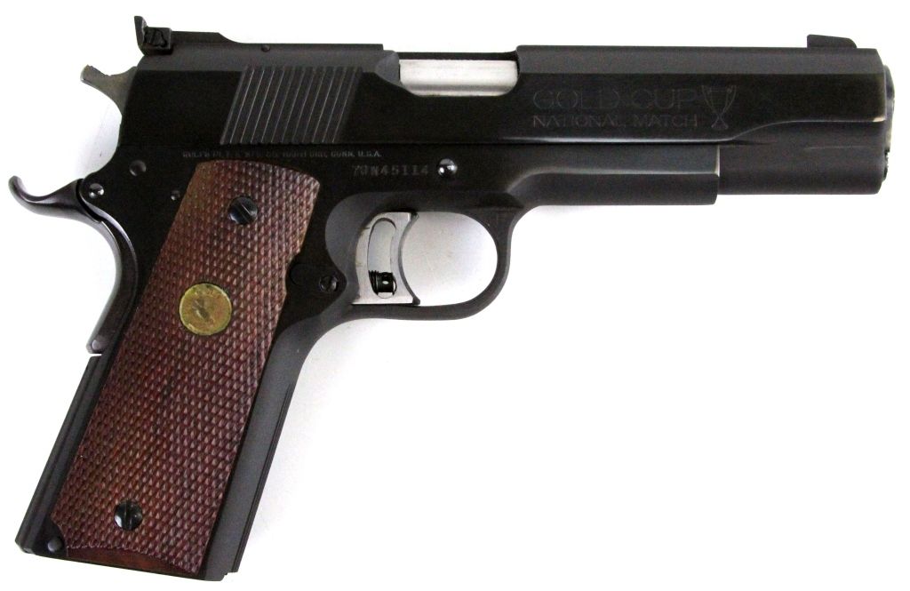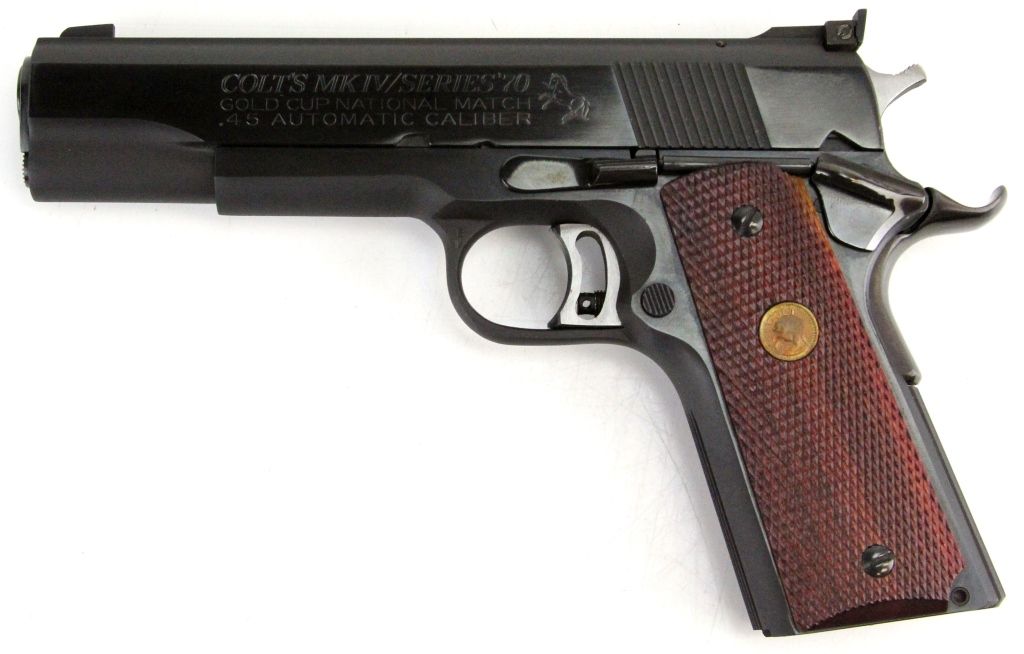 COLT GOLD CUP NATIONAL MATCH MKIV SERIES 70 PISTOL Colt .45 Auto. Type: Pistol Manufacturer: Colt Model: MKIV Caliber / Gauge: .45 Barrel Length: 3.5" Serial Number: 70n45114 Condition: Like new with a few scuffs.