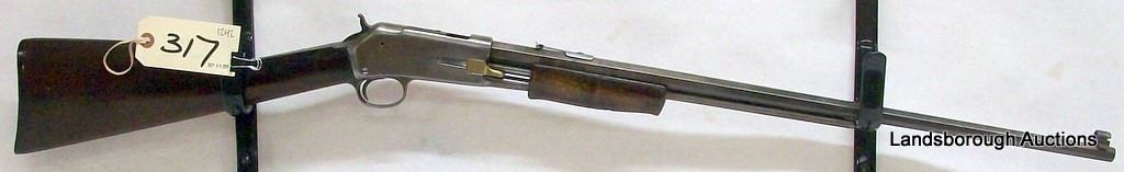 NON-RESTRICTED, PUMP ACTION, 22LR, 24" OCTAGONAL BARREL, SN 33115. REFINISHED WOOD HAS A FEW DENTS AND MARKS, BLUING IS GREY ON RECEIVER, BROWNISH ON BARREL, BORE PITTED.
