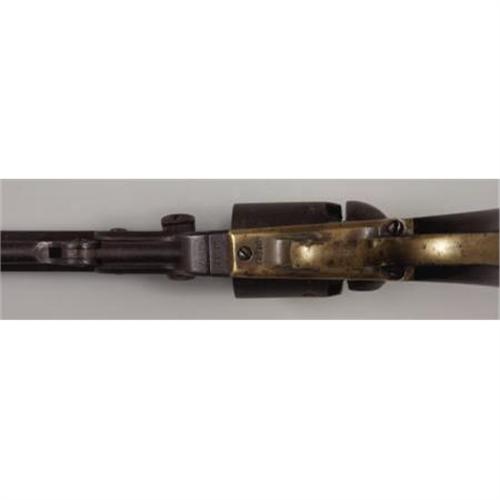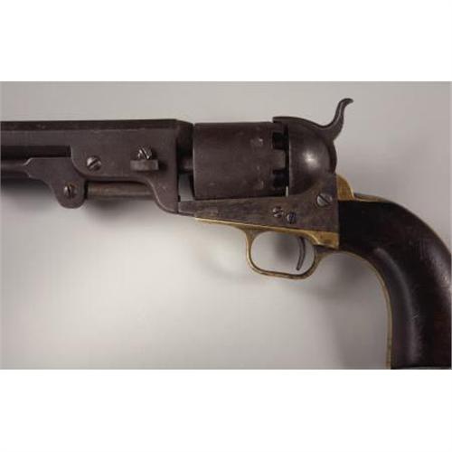 <B>COLT M1851 MARTIALLY MARKED .36 CALIBER PERCUSSION NAVY REVOLVER.</B></I> Serial #71576 all matching including wedge (cylinder number not visible). New York City address. Overall, a nice honest representative example of a martially marked M1851 navy.<BR><B><BR>Condition:</B></I> All metal with deep dark smooth untouched patina. Mechanically perfect, fair bore. Correct original US mark on frame, cylinder worn/ aged with scene and number no longer visible but unquestionably original and correct. Wedge screw an old replacement, otherwise the gun is entirely correct and original. Brass straps with nice untouched patina and correct inspectors’ initials. Grips with deep dark patina and traces of original varnish. Some dents on the bottom but overall very nice untouched condition commensurate with the rest of the gun. Inspector’s cartouches no longer visible. <BR><BR><b>Shipping:</b> Requires 3rd Party Shipping (<a target="_blank" href="http://www.heritageauctions.com/common/shipping.php">view shipping information</a>)