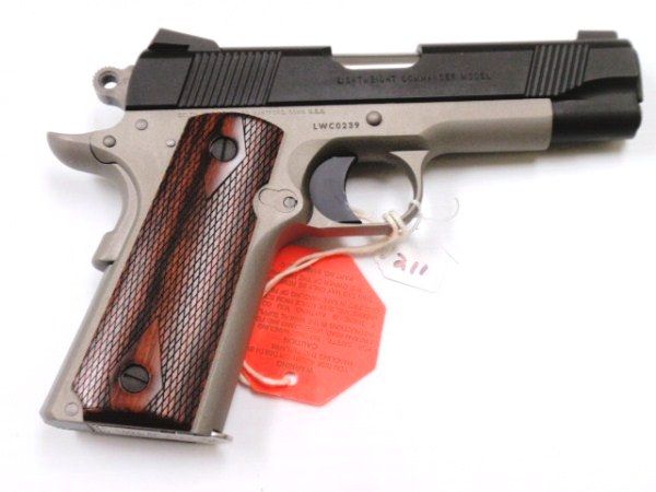 SEMI AUTOMATIC PISTOL, CAL: 38 SUPER, SN: LWC0239, LIGHT WEIGHT COMMANDER MODEL, 4 1/4" BARREL, STAINLESS STEEL, TRIJICON FRONT SIGHT, 2 MAGAZINES, ORIGINAL HARD CASE