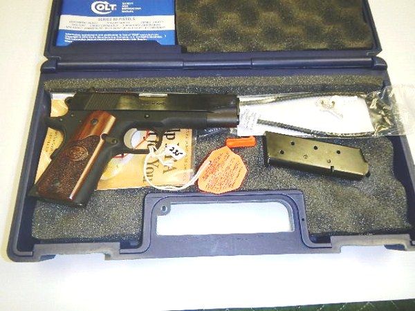 SEMI AUTOMATIC PISTOL, CAL: 45ACP, SN: TCC0714, TEXTURED WOOD GRIP, GOVT MODEL LIGHT WEIGHT OFFICERS, 4 1/4" BARREL, NATIONAL MATCH BARREL,, 2 - 7 ROUND MAGAZINES, ORIGINAL HARD CASE