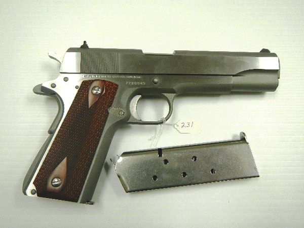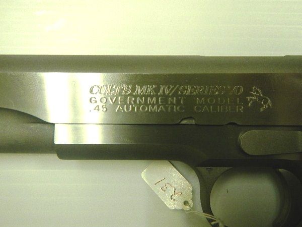 SEMI AUTOMATIC PISTOL, CAL: 45ACP, SN: 72B0945, GOVT. MODEL SERIES 70, 5" BARREL, BRUSHED STAINLESS, COLTS MARK IV/SERIES 70, 2 - 8 ROUND MAGAZINES, ORIGINAL BOX