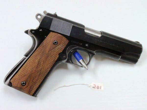 SEMI AUTOMATIC PISTOL, CAL: 45ACP, SN: 27851LW, BLUED, WOOD GRIPS, 8 ROUND MAGAZINE, SOFT CASE, HANDLING MARKS ON FRAME