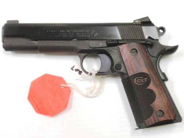 SEMI AUTOMATIC PISTOL, CAL: 45ACP, SN: 0184WCB, GOVT. MODEL SERIES 70, BLUED, 5" BARREL, BRASS DOT FRONT SIGHT, FULLY CHECKERED MAIN SPRING HOUSEING, ORIGINAL BOX