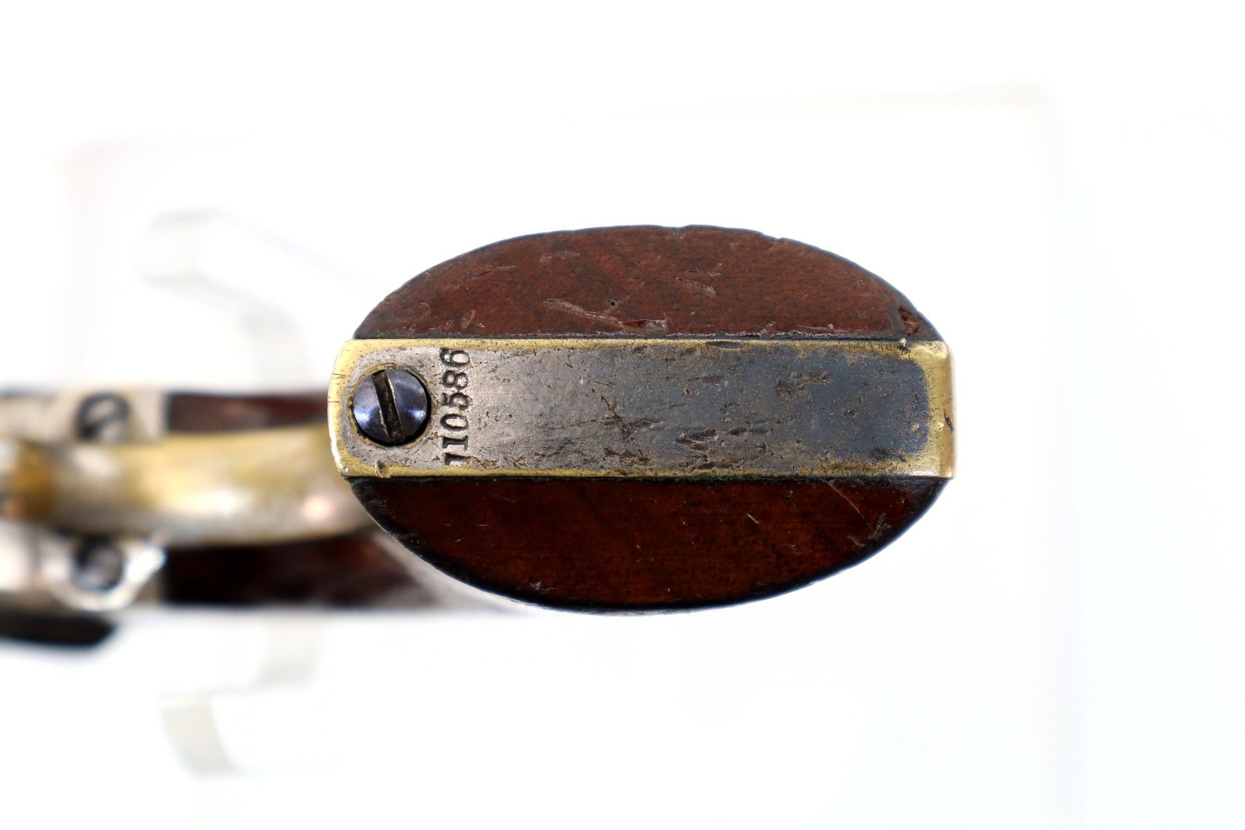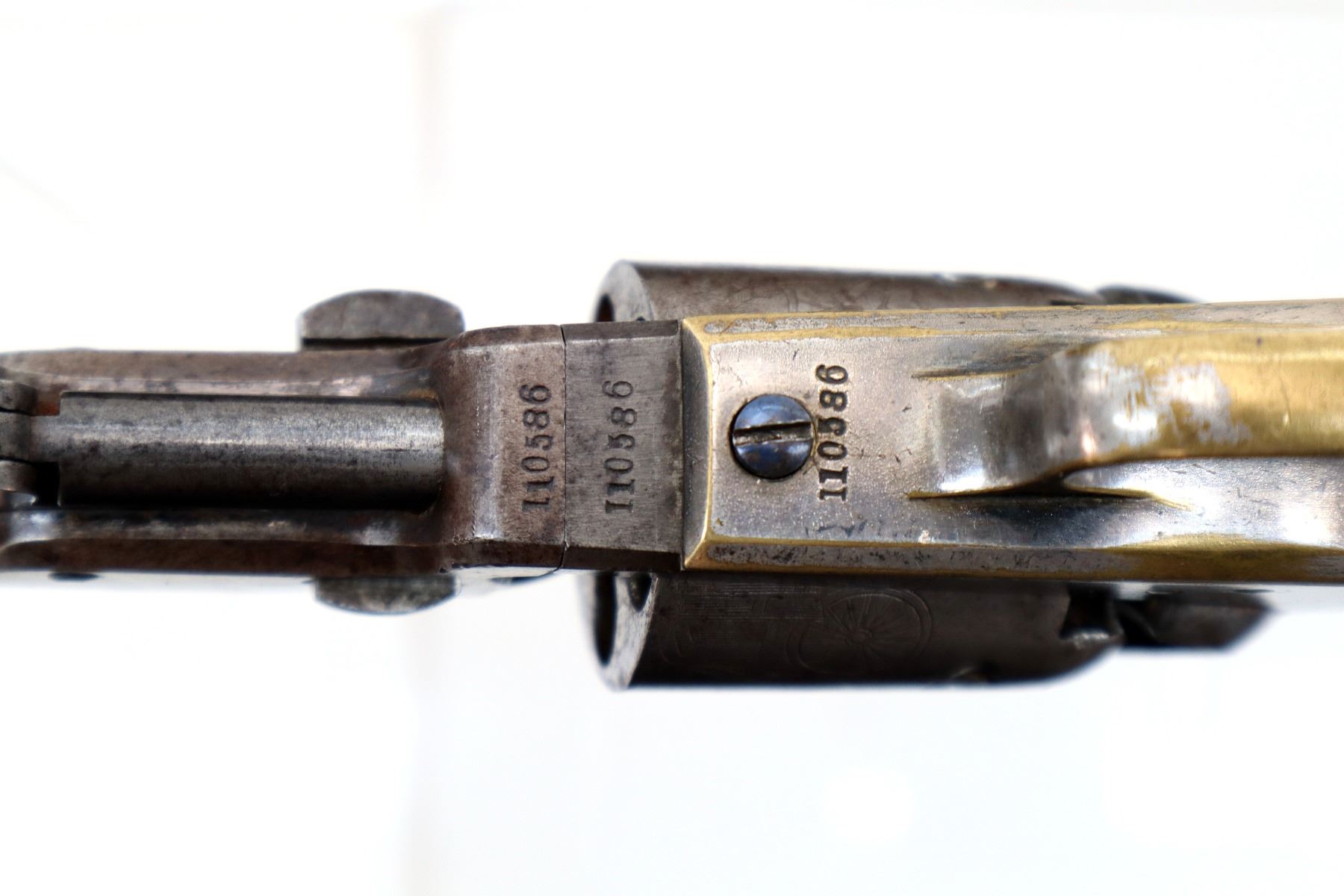 Main Description: Functions mechanically as designed, Does not hold cock, cylinder does not index (missing hand). Brass bead, octagon barrel, smooth cylinder with visible stage coach scene, checkered spur hammer and smooth trigger. Brass trigger guard and back strap with some Nickel finish remaining. Two piece wood grips, loading lever under barrel.