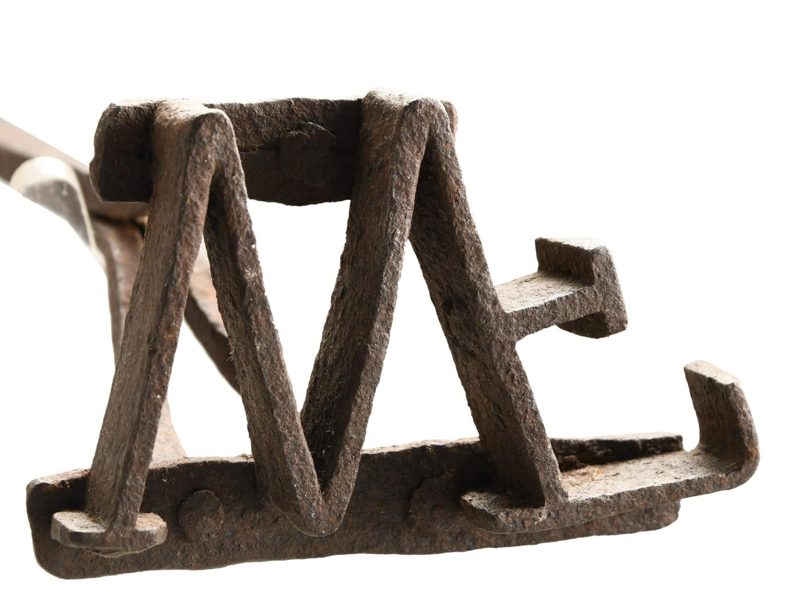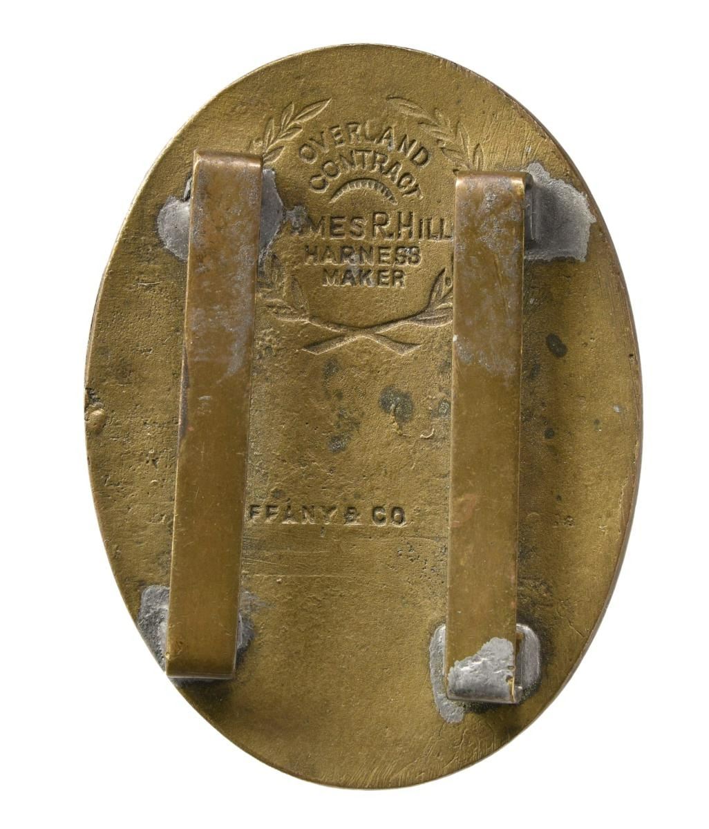 DALE ROBERTSON IN "TALES OF WELLS FARGO". 1) COLT SAA REVOLVER. Cal. 38 WCF. S# 229575. Bbl. 4 3/4" w/ Hartford address. Six-shot fluted cyl. Bottom of the frame above S# is stamped "S", identifying this revolver as the property of the Stembridge gun rental company, which supplied firearms to filmmakers. "Hollywood" simulated stag grips, which were widely used in the motion picture industry. Frame & grip straps have matching numbers. Loading gate is marked w/ assembly number 860. UNATTACHED ACCESSORIES: a notarized letter signed by Dale Robertson and dated October 21, 2001. The letter identifies this revolver as being a studio gun from the personal collection of Dale Robertson. Also included is a photo of Dale Robertson w/ this revolver and two other photos. The brass Wells Fargo & Co. belt buckle featuring an American eagle & thirteen stars is marked "Tiffany & Co." on the back. An iron "WF" Wells Fargo branding iron measuring 18 1/2" in length. Hang tag that was on the shotgun detailing S#. CONDITION: gun retains over 90% of its reblued finish. Bbl. markings are thinned. Action shows wear. The dark, lightly pitted bore retains good rifling. (23-5442/DS). CURIO. 2) BELGIAN HAMMER SXS SHOTGUN. Cal. 12 Ga., 2 3/4". S# 22240 (Stembridge # 9471-1243). The 18 1/2" barrels have Mod chokes. Rebounding hammer action with Belgian proofs on water tables & double triggers. Floorplate stamped "S", identifying this shotgun as a property of Stembridge. Walnut splinter forearm & round knob pistol grip stock. Left side of the buttstock is stamped "WF & CO. / EXP. / 147". LOP: 13 1/2" to steel buttplate. CONDITION: barrels have traces of blue mixed with brown/gray patina and areas of oxidation. Action has a brown/gray patina with oxidation. Wood has a well-worn finish with smooth checkering. Pitted bores. (23-5443/MD). CURIO. $4,000-6,000.