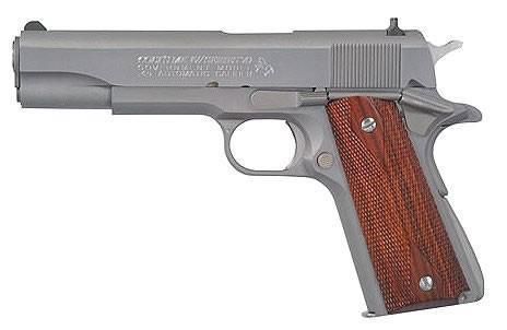 FAMILY:1911 Style Pistol Series MODEL:Series 70 Government TYPE:Semi-Auto Pistol ACTION:Single Action FINISH:Brushed Stainless STOCK/FRAME:Steel Frame STOCK/GRIPS:Wood CALIBER/GAUGE:45 ACP CAPACITY:7+1 # OF MAGS:2 BARREL:5" OVERALL LENGTH:8 1/2" SIGHTS:Fixed SAFETY:Frame Mounted Safety ADDL INFO:Double Diamond Rosewood Grip