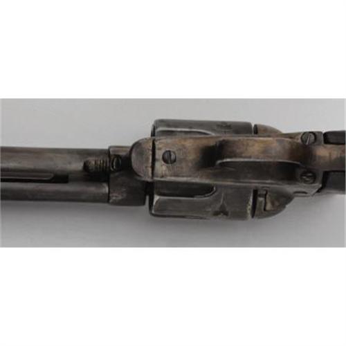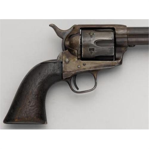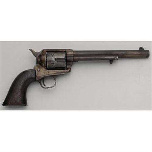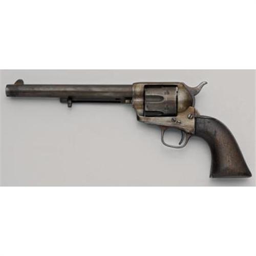 <B>COLT SINGLE ACTION REVOLVER</B></I> - Serial Number 14709, Circa 1874. 7½" barrel in .45 caliber. Mechanically functions. Wood grips. <BR><BR><B>Condition:</B></I> Basically a composite of original Colt parts. The frame, backstrap and trigger-guard came together. The remarked barrel, cylinder, ejector housing and hammer are all from later vintage single actions. Entire revolver reworked and artificially aged. Wood grips appear old but do not fit well.<BR><BR><b>Shipping:</b> Bats, Clubs, Sticks, Swords, Rif (<a target="_blank" href="http://www.heritageauctions.com/common/shipping.php">view shipping information</a>)