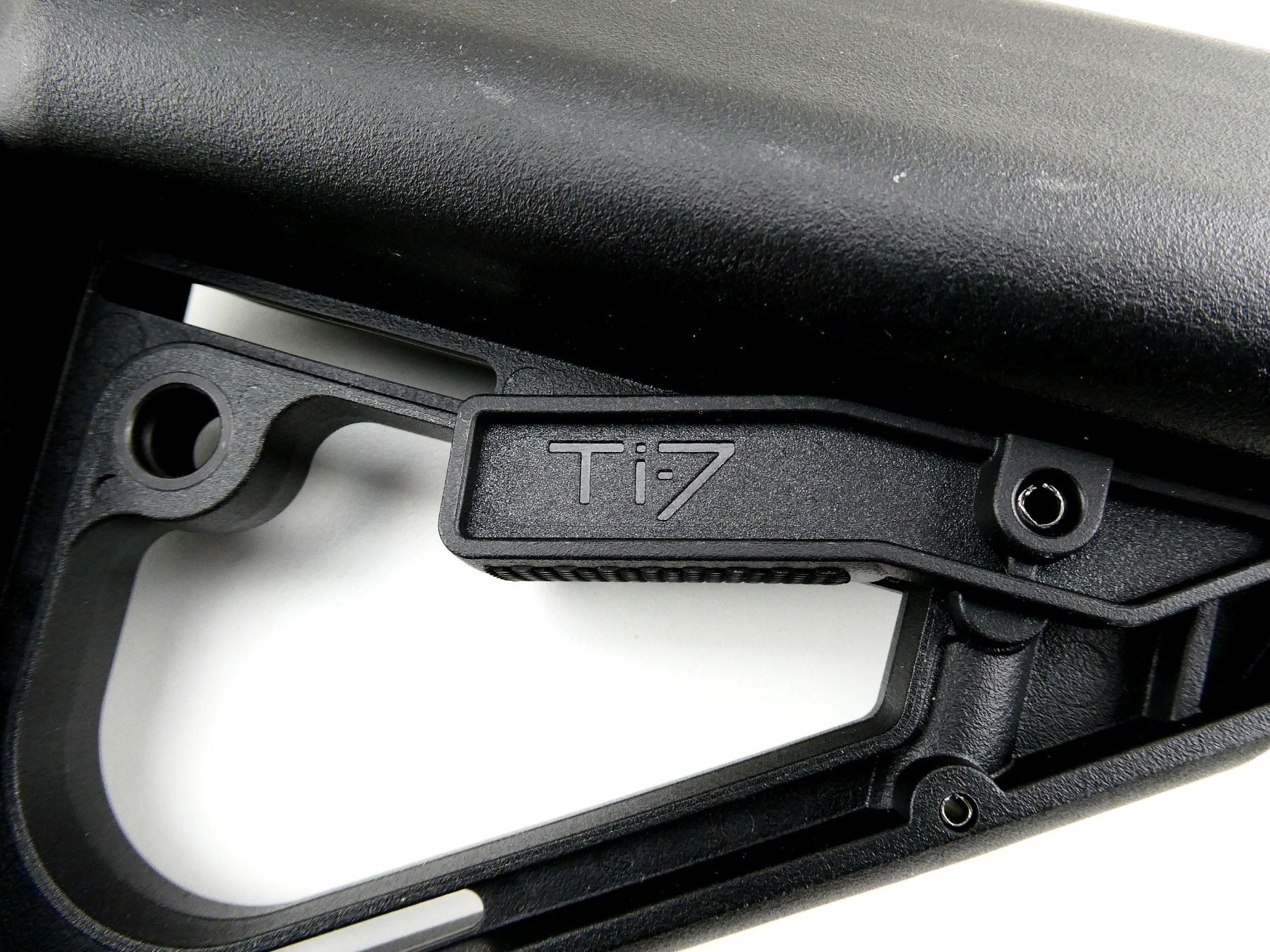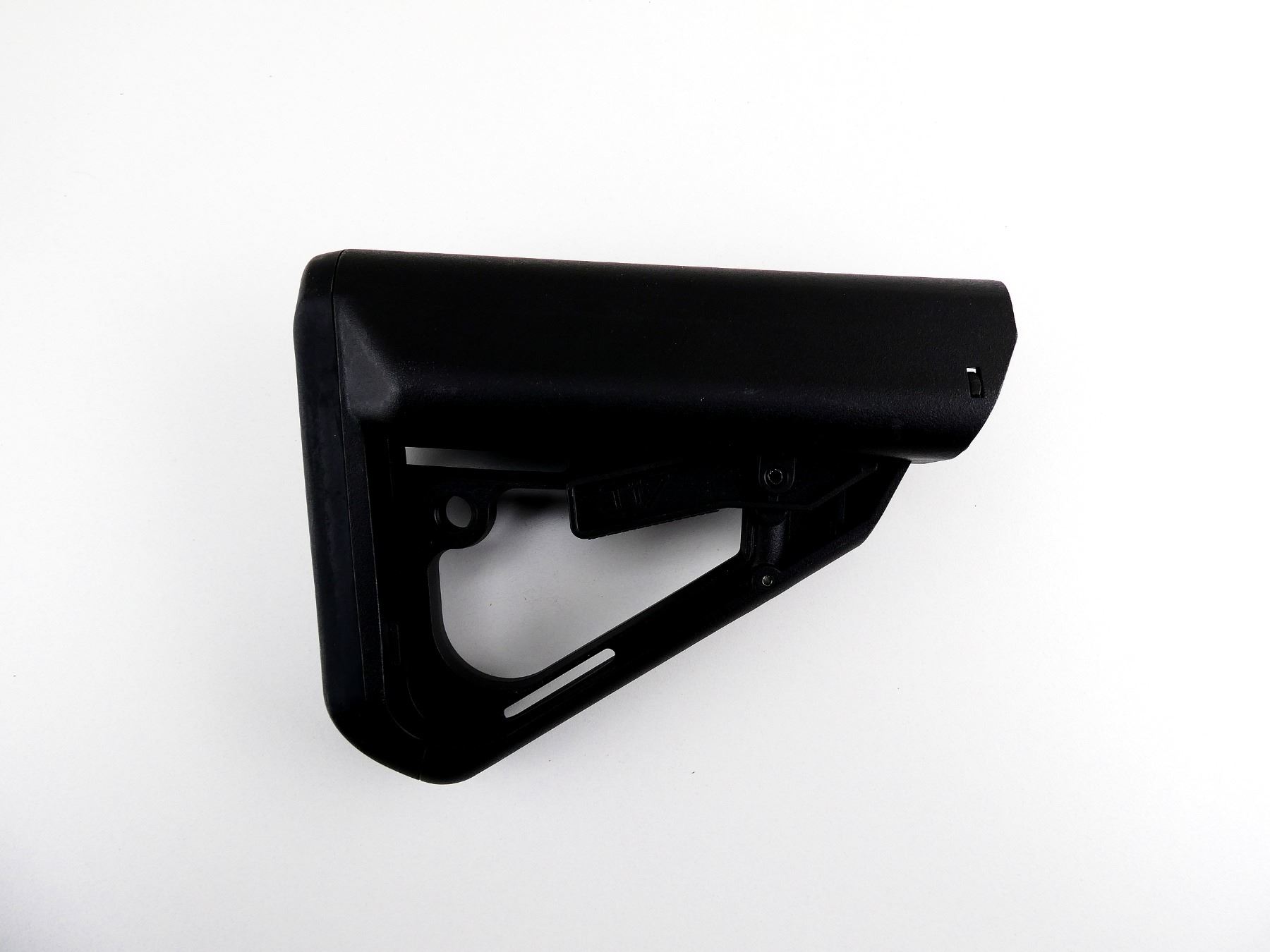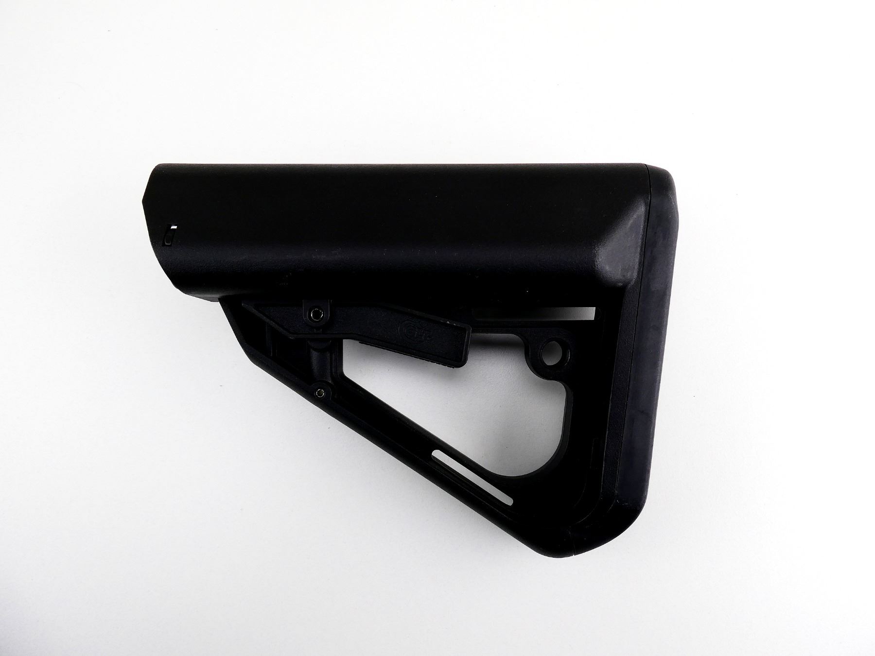 (1) BLACK POLYMER CONSTRUCTION, WITH STORAGE, GROOVED BUTT, MARKED: "COLT", "TI-7", ETC., OAL APPROX. 7.5". MAY REQUIRE FITTING. SEE PHOTOS.