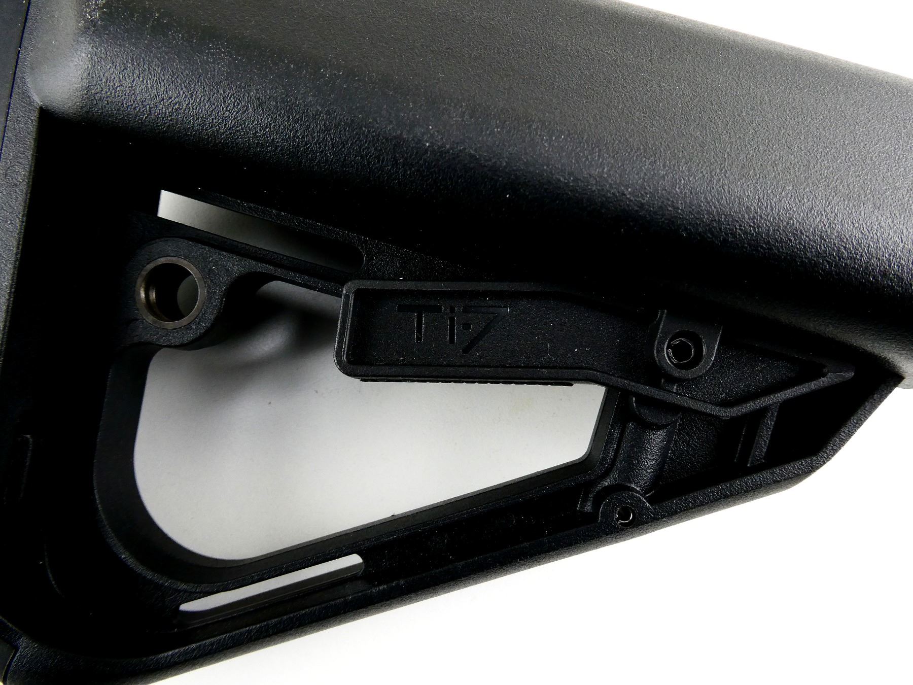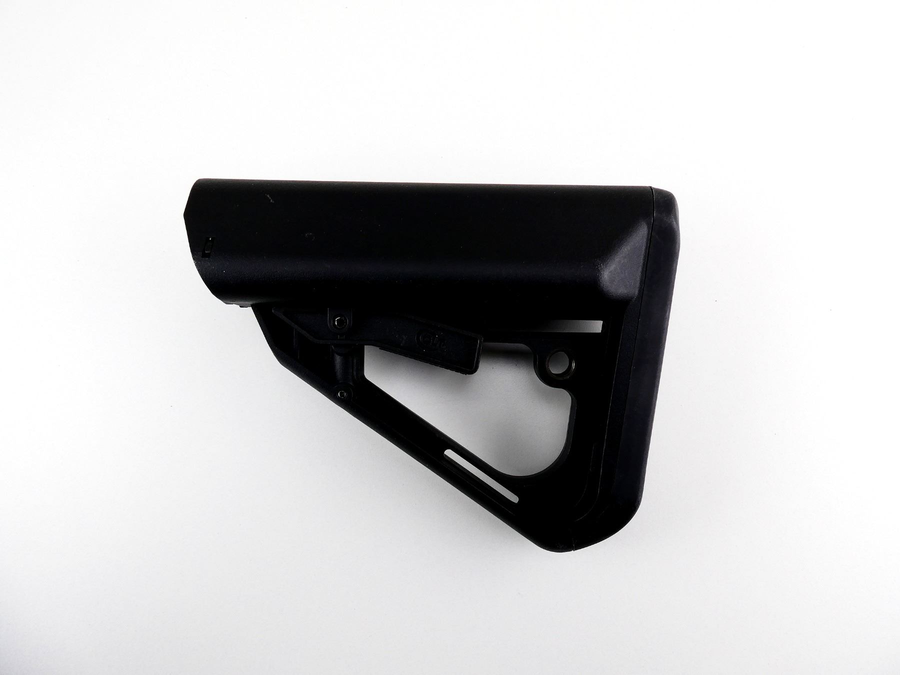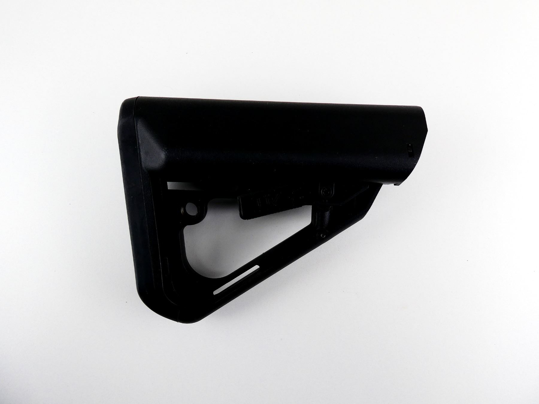 (1) BLACK POLYMER CONSTRUCTION, WITH STORAGE, GROOVED BUTT, MARKED: "COLT", "TI-7", ETC., OAL APPROX. 7.5". MAY REQUIRE FITTING. SEE PHOTOS.