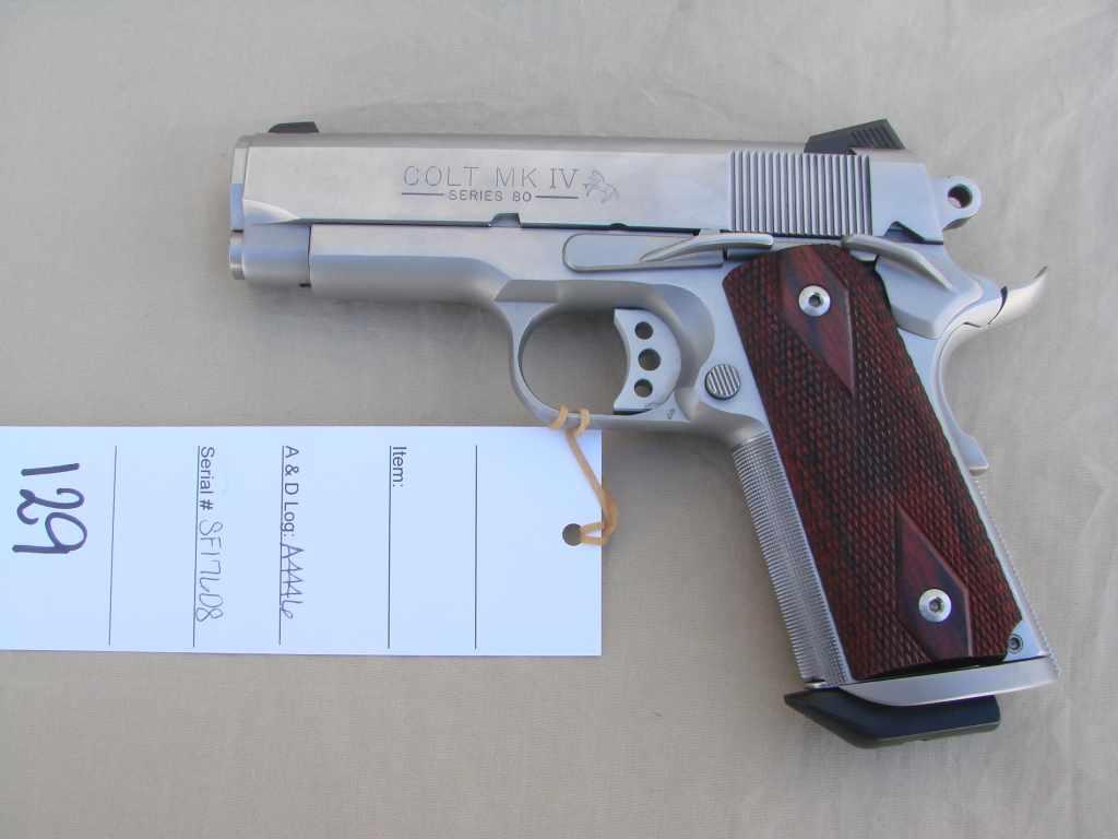 COLT OFFICERS MODEL 45 ACP CAL, CUSTOM WORK DONE BY "KINGS GUN WORKS", MATCH BUSHING AND TRIGGER, CUSTOM HAMMER , MAG WELL, EXTENDED SLIDE STOP AND SAFETY, MICARTA GRIPS W/ DIAMOND CHECKERING, CHECKERED FRAME(H)A4446, SF17608