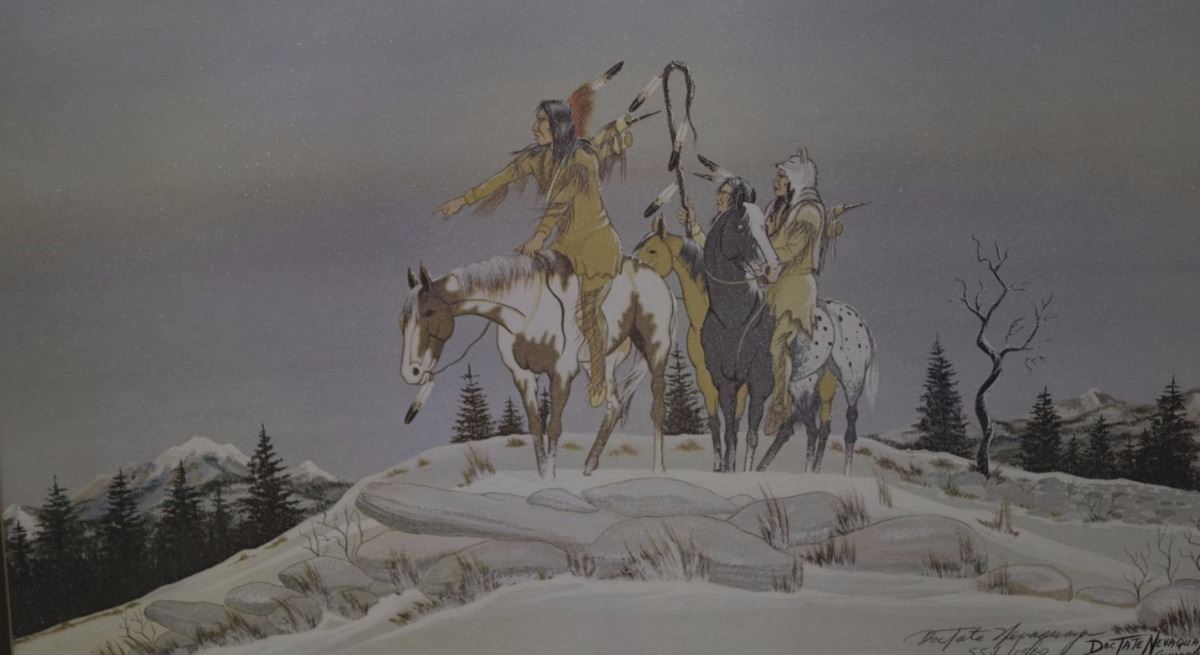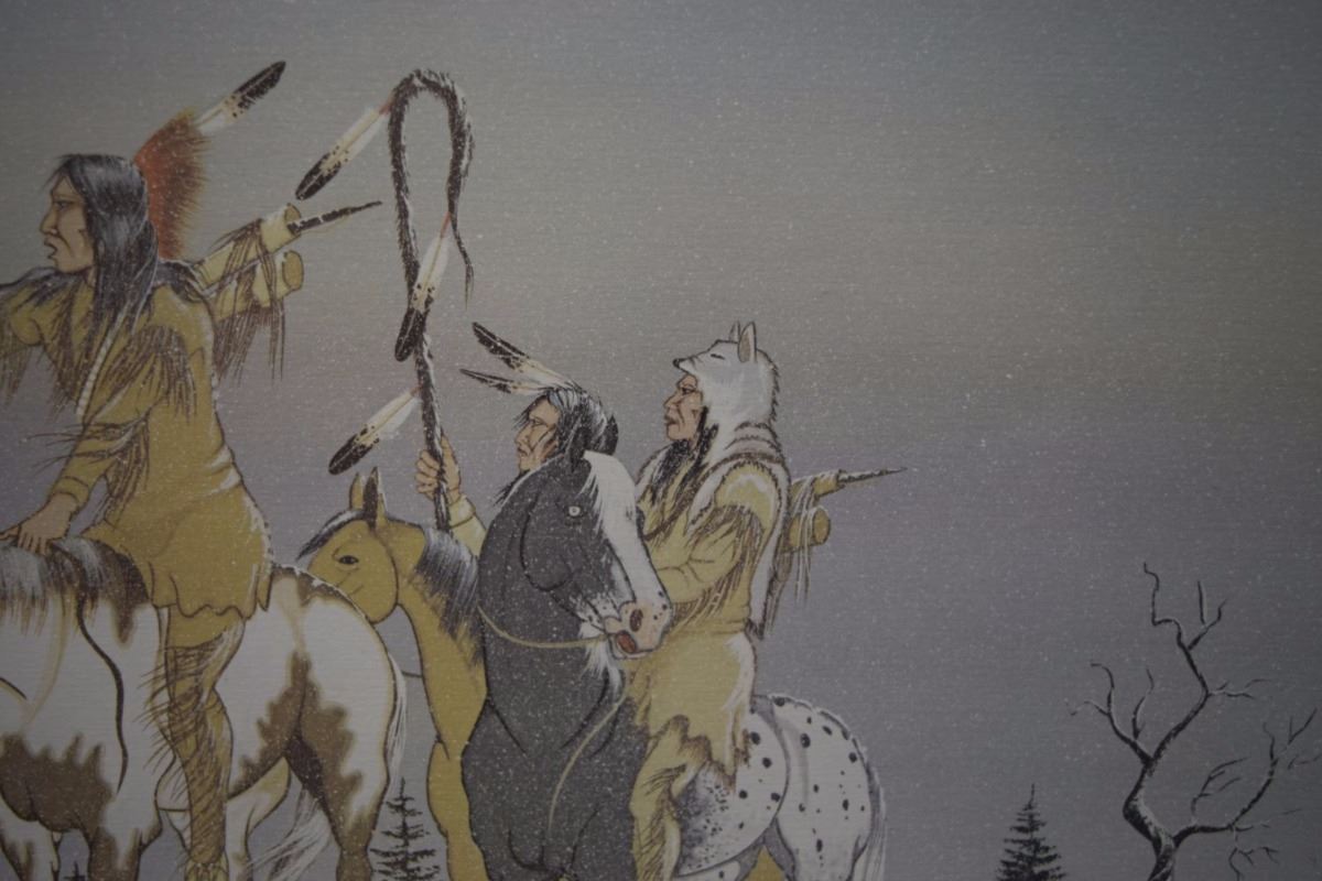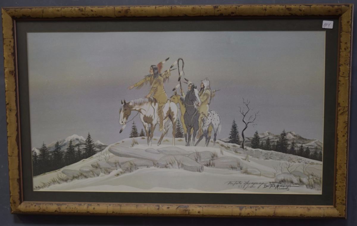 1980's titled the Hunt hand signed Doctate Nevaquaya number 554/150014'' x 26'' frame is 19'' x 30''