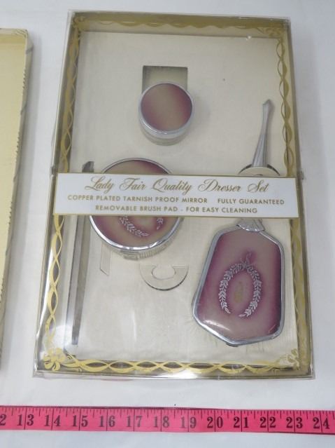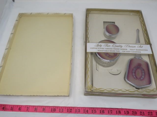COMB AND BRUSH "DRESSER SET" *MISSING COMB AND MIRROR* (COMES IN ORIGINAL PACKAGING)