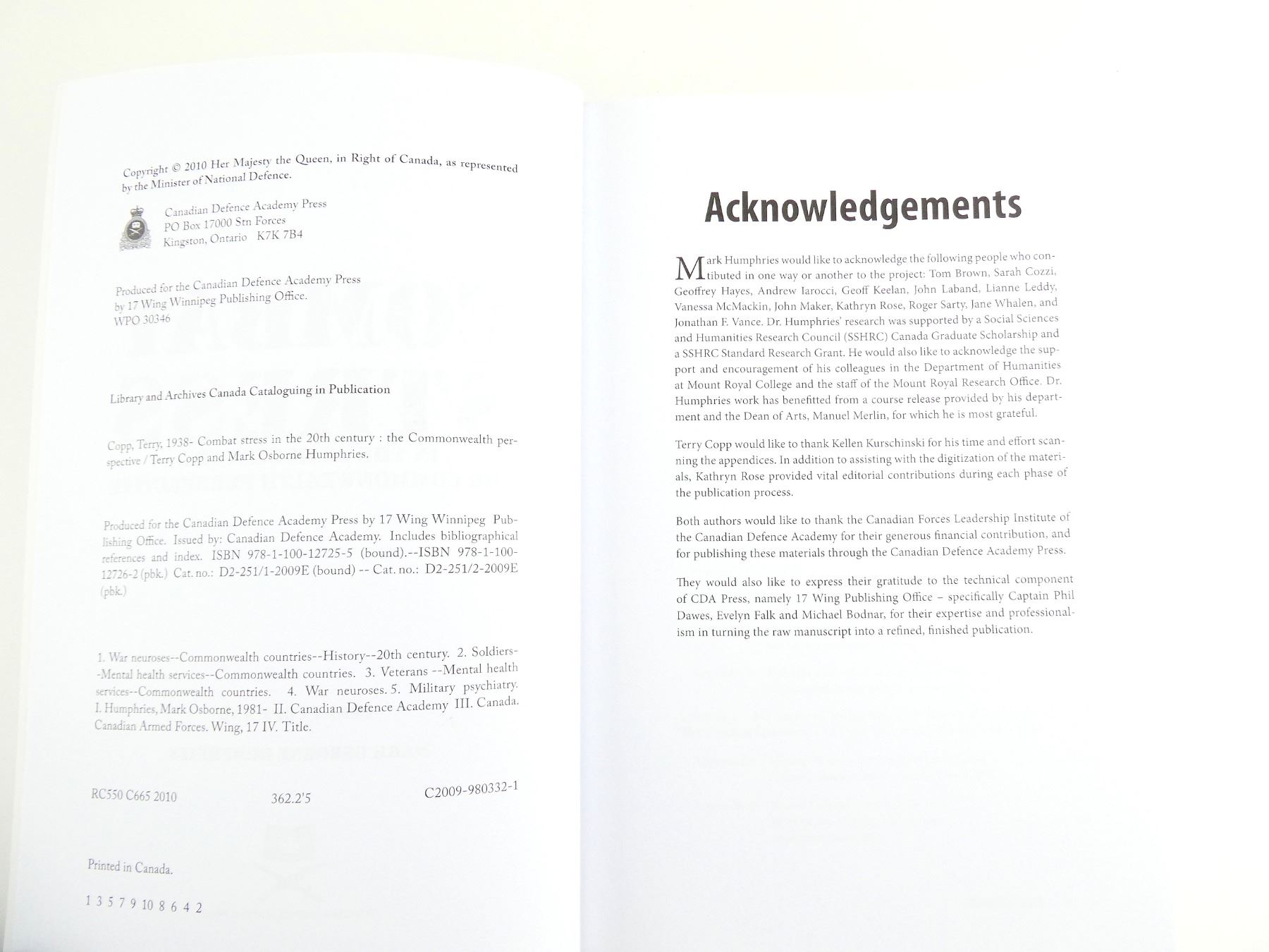 "COMBAT STRESS IN THE 20TH CENTURY: THE COMMONWEALTH PERSPECTIVE" BOOK