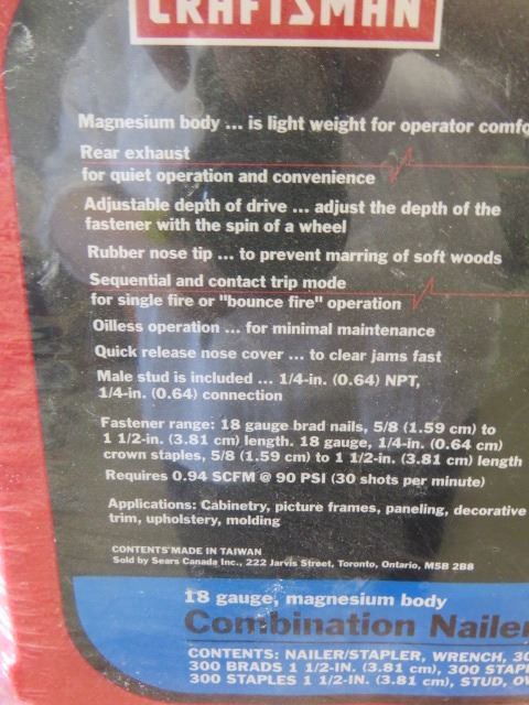 COMBINATION NAILER STAPLER KIT (NEW) *CRAFTSMAN* (18 GAUGE) *MAGNESIUM BODY* (CASE INCLUDED) *STAPLES AND NAILS*