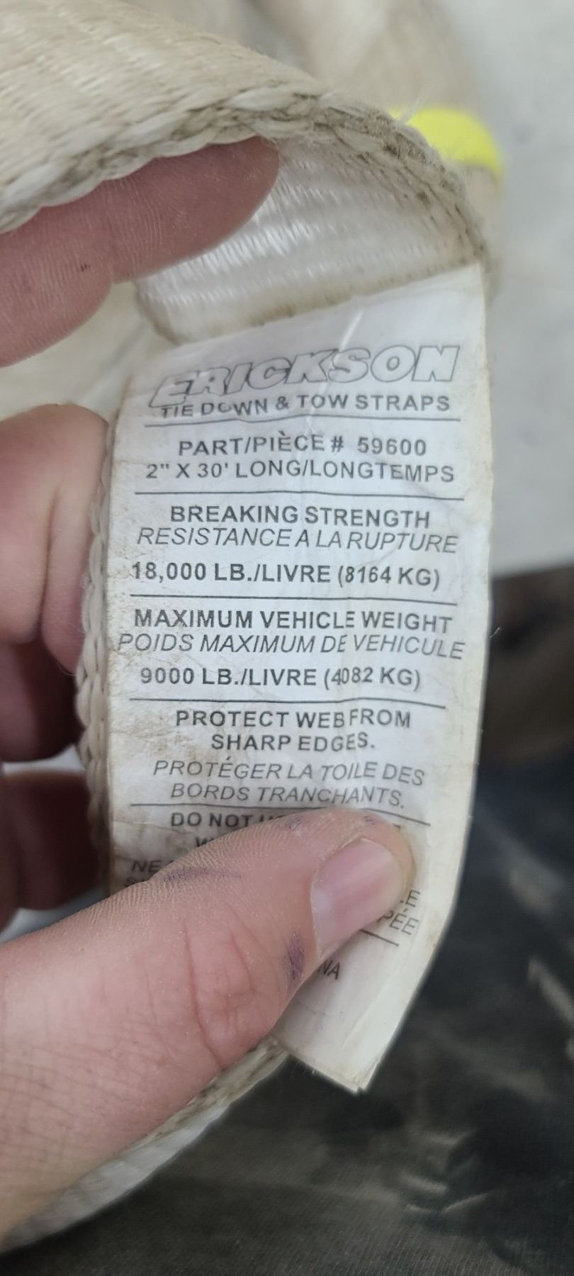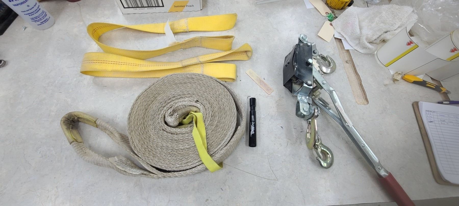 COME-A- LONG AND 18,000LBS TOW STRAP 2" X30' AND TWO 2 X 36" ANCHOR STRAPS