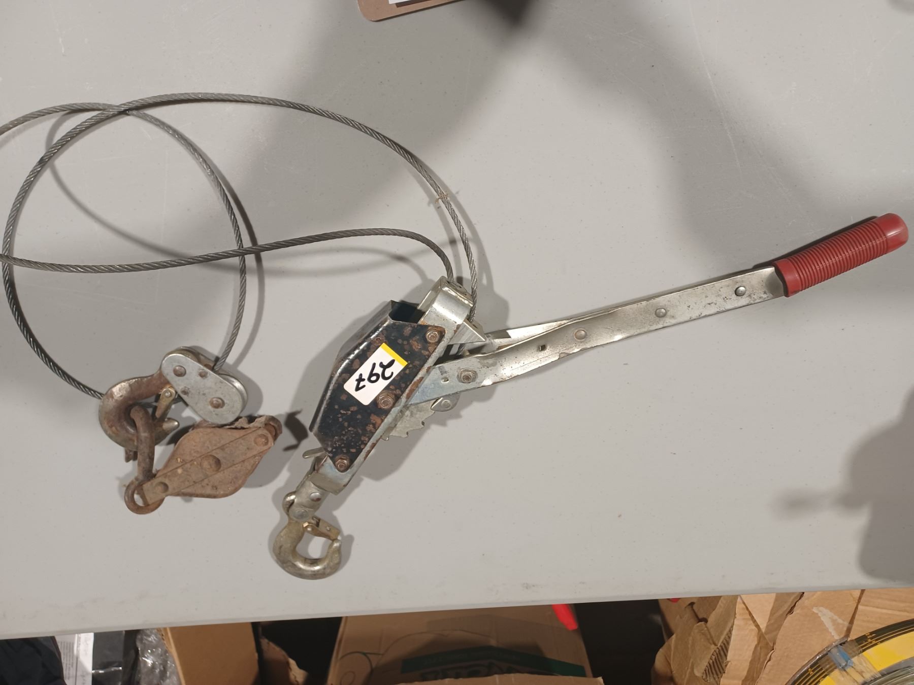 COME ALONG WITH CABLE AND AN EXTRA BLOCK