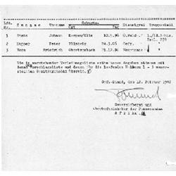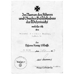 <b>386. COMMANDERS OF THE GERMAN AFRIKA CORPS </b>A rare grouping of four documents, each signed by a commander of Hitler's vaunted Afrika Corps. Included are: <b>ERWIN ROMMEL </b>(1891-1944)<b> </b>German field marshal whose Afrika Corps threw back repeated British and American assaults in North Africa, ultimately was forced to commit suicide due to his implication in the Hitler bomb plot. War-date D.S. 2pp. legal folio, [North Africa], Feb. 12, 1942 awarding three men the War Merit Cross, 2nd Class with Swords; Col. Gen. <b>ALFRED GAUSE</b>, Rommel's Afrika Corps Panzer Army Chief of Staff, S.P. 4" x 6" b/w showing Gause in uniform, signed on verso and adding a three-line listing of his commands; Gen. <b>LUDWIG CRUEWELL</b>, German general who took over the command of the Afrika Korps when Rommel assumed command of Panzer Group Africa, D.S. 2pp. legal folio, [Headquarters], Feb. 22, 1942, an award list for the War Merit Cross, 2nd Class, signed as commander of the Afrika Corps, and; Col. Gen. <b>HANS-JUERGEN VON ARNIM</b>, German officer who succeeded Rommel as commander of Group Afrika, D.S. 1p. 8vo., Oct. 10, 1941 awarding a soldier an Iron Cross. A rare and difficult-to-assemble collection, in very good condition. <b>$1,000-1,500</b>