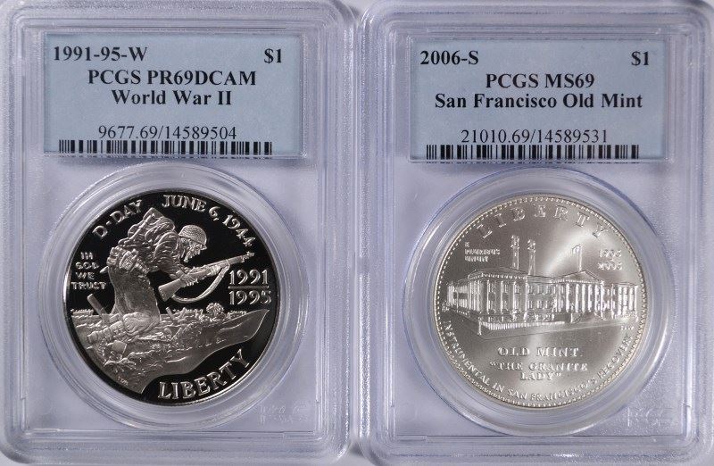 COMMEM SILVER DOLLARS: 1993 WWII, PCGS PR-69 DCAM & 06 S.F. OLD MINT PCGS MS-69