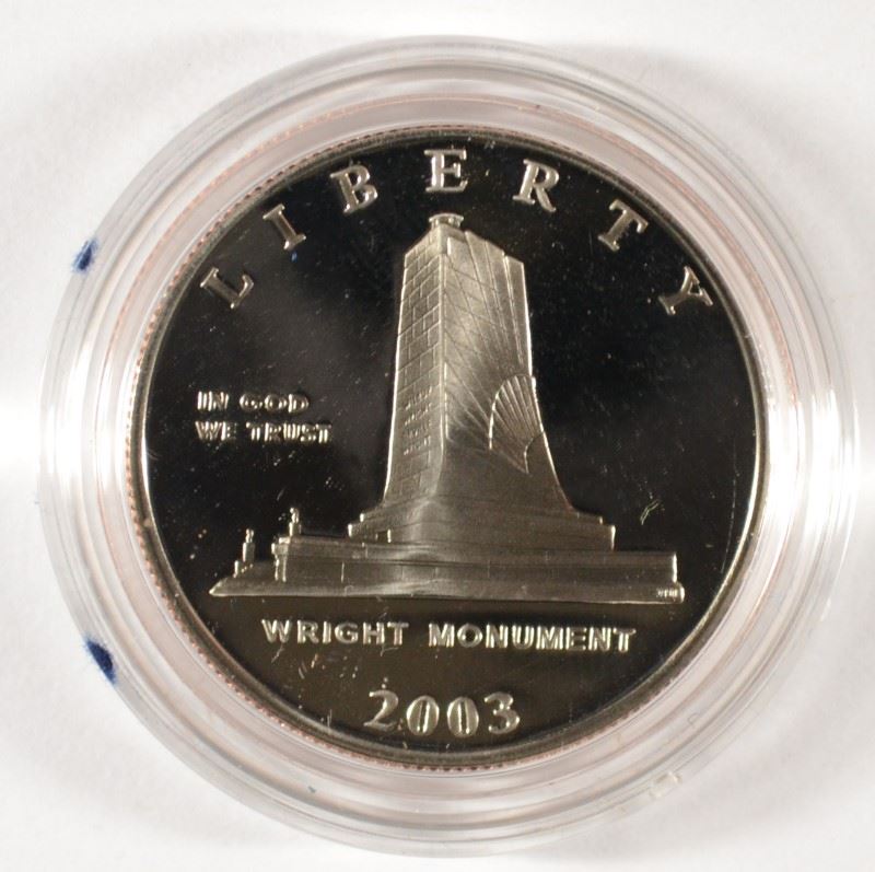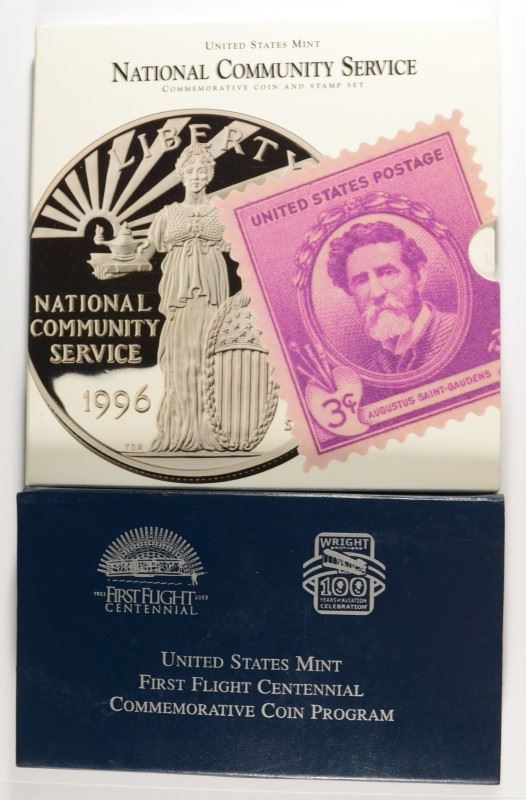 COMMEM SILVER DOLLARS 2003 1st FLIGHT, UNC 1996 PF COMMUNITY SERVICE COIN/STAMP