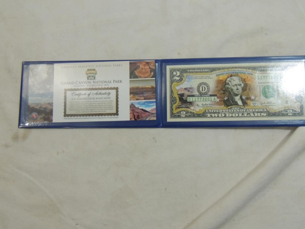 US COLORIZED $2 BANK NOTE, GRAND CANYON ARIZONA EST. 1872 COLLECTIBLE CURRENCY AS SHOWN SEE PHOTO FOR MORE DETAILS.