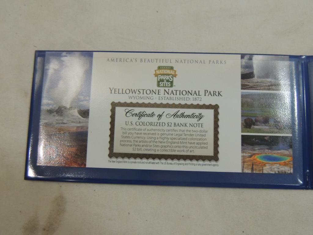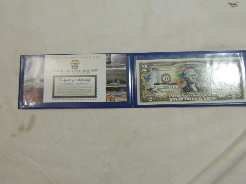 US COLORIZED $2 BANK NOTE, YELLOWSTONE NATIONAL PARK WYOMING EST. 1872 COLLECTIBLE CURRENCY AS SHOWN SEE PHOTO FOR MORE DETAILS.