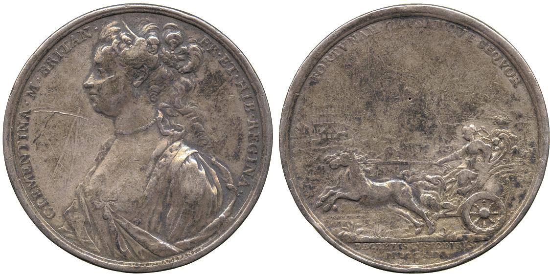 COMMEMORATIVE MEDALS. BRITISH HISTORICAL MEDALS. George I, Escape of Princess Clementina from Innsbruck, Silver Medal, 1719, by Otto Hamerani, bust of the Princess left, rev the Princess escaping to Rome in a biga, 48mm, (MI 444/49). Fine.