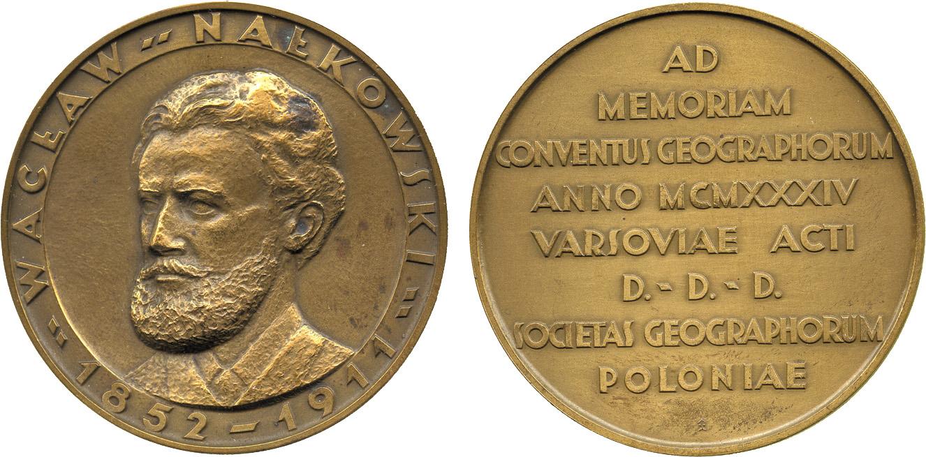 COMMEMORATIVE MEDALS BY THEME. Astronomy, Poland, Waclaw Nalkowski (1852-1911), Bronze Medal of the Geographical Society of Poland, 1934, by H Nalkowska Beckowa, bust left, rev legend, 55mm. Very fine.