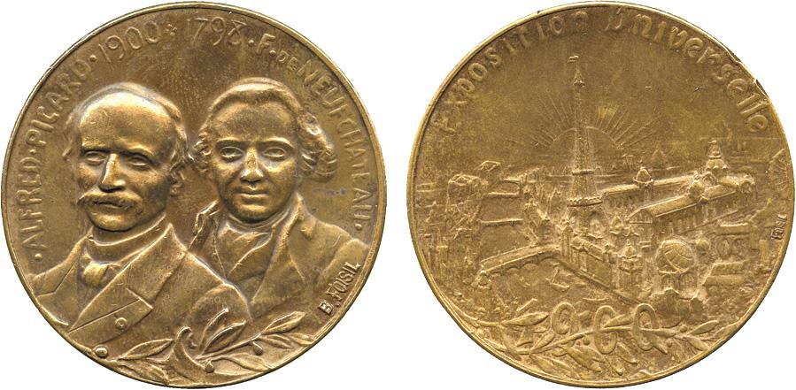 COMMEMORATIVE MEDALS BY THEME. Exhibition, France, Universal Exposition, Paris 1900, Alfred Picard (1844-1913) and Nicolas-Louis François de Neufchâteau, Bronze Medal, by B Foisil, busts side by side, rev panorama of exhibition site, 36mm. Very fine, scarce.