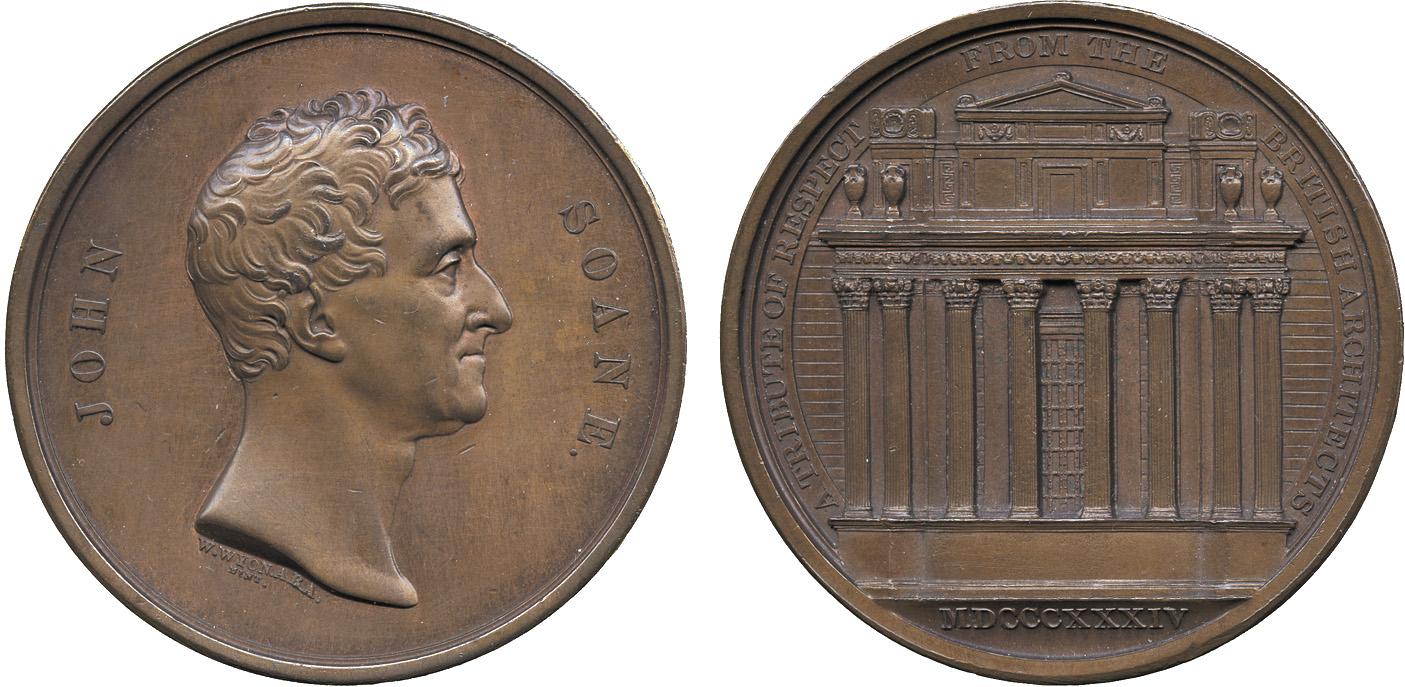 COMMEMORATIVE MEDALS. OTHER BRITISH MEDALS. Sir John Soane, The Soane Testimonial, Copper Medal, by W Wyon after Chantrey, head right, rev façade of the Bank of England, 57mm (BHM 1662). Good very fine.