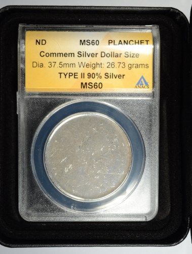 COMMEMORATIVE SILVER DOLLAR BLANK PLANCHET, TYPE ll ANACS MS-60, (90% SILVER)