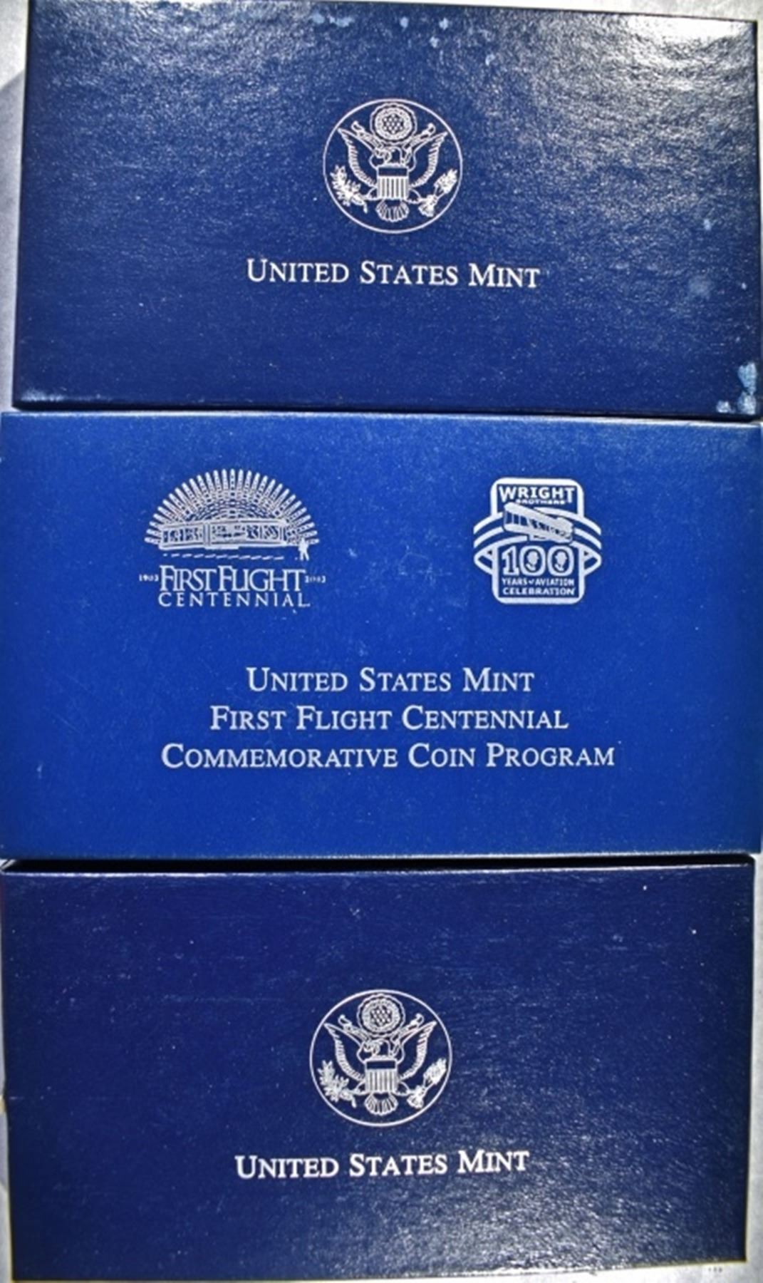 DOLLAR, 2000 LIBRARY of CONGREE PROOF SILVER DOLLAR, 2003 FIRST FLIGHT UNC HALF DOLLAR - ALL PACKAGING/COA ESTIMATE $65 - $85.