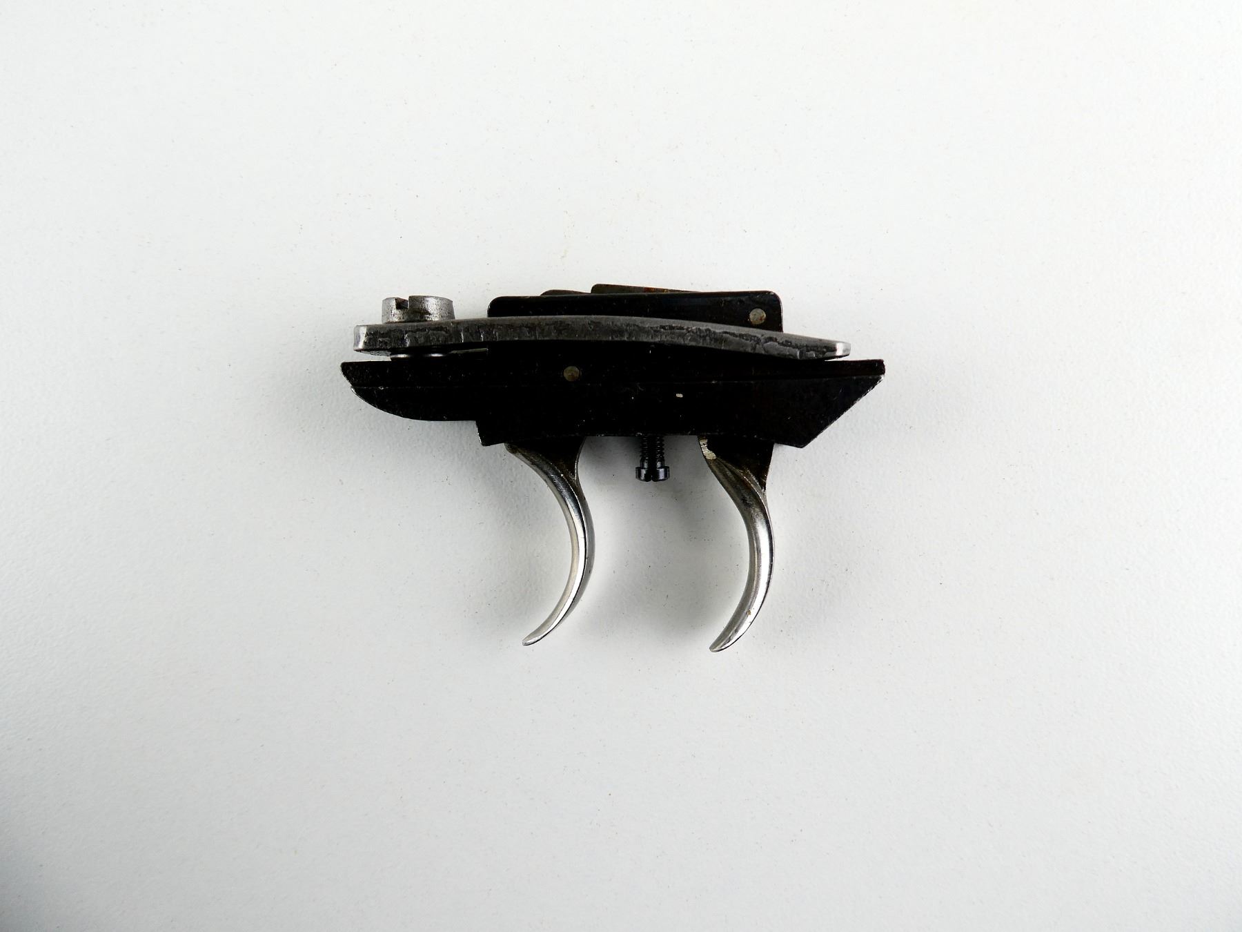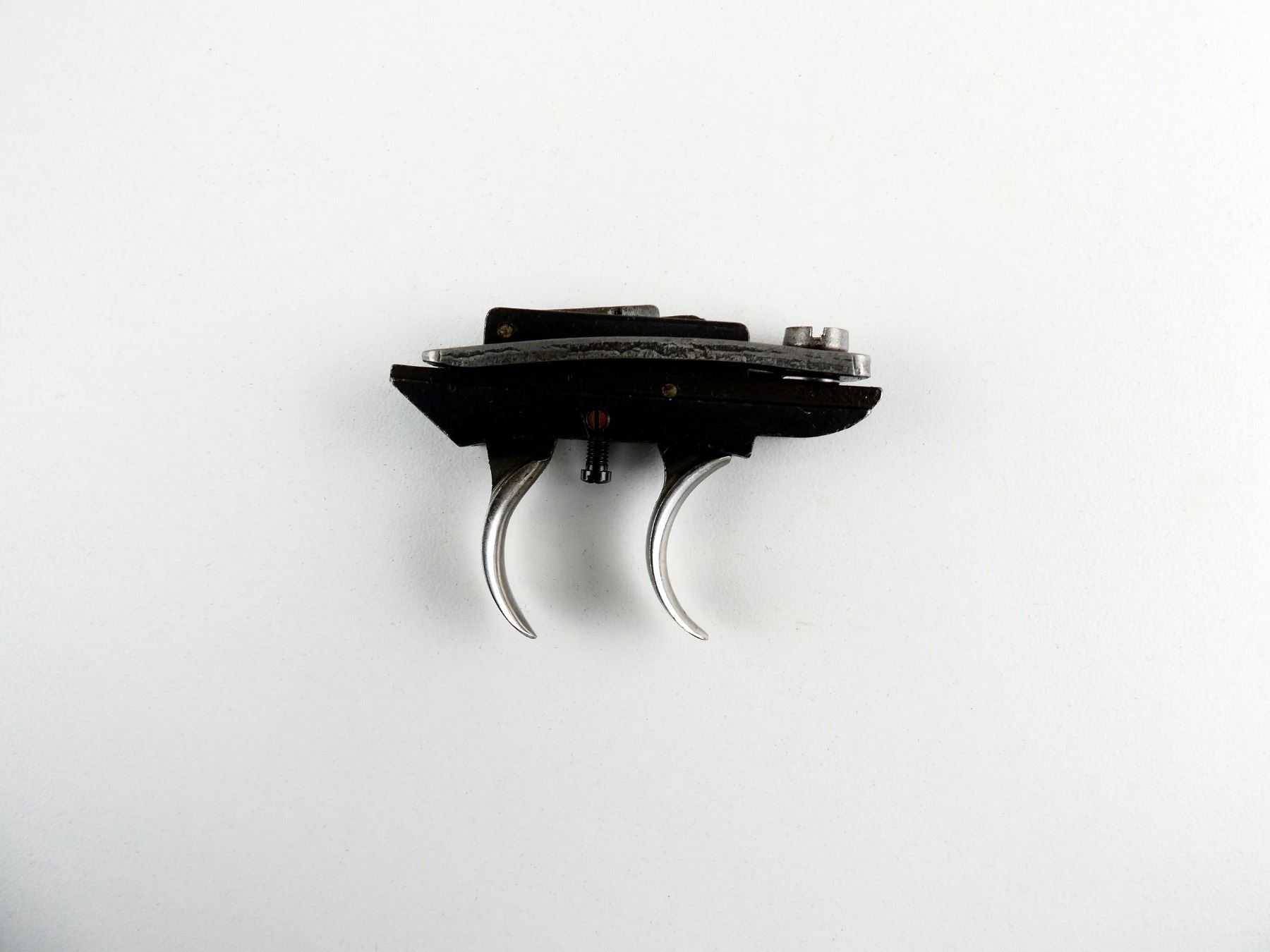 (1) DOUBLE-SET TRIGGER, ADJUSTABLE, BLUED & SILVER STEEL CONSTRUCTION, UNMARKED. MAY REQUIRE FITTING. SEE PHOTOS.