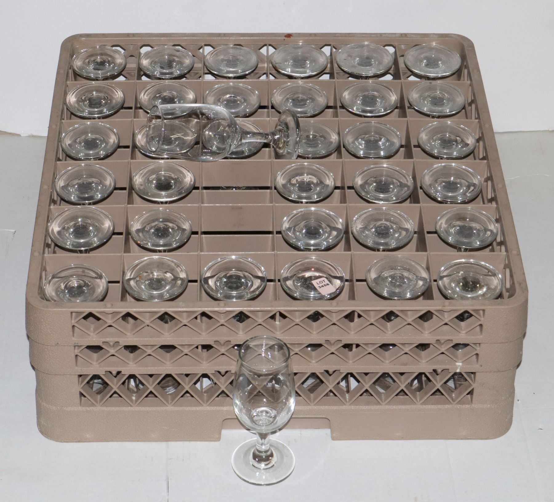 COMMERCIAL DISH RACK FULL OF WINE GLASSES
