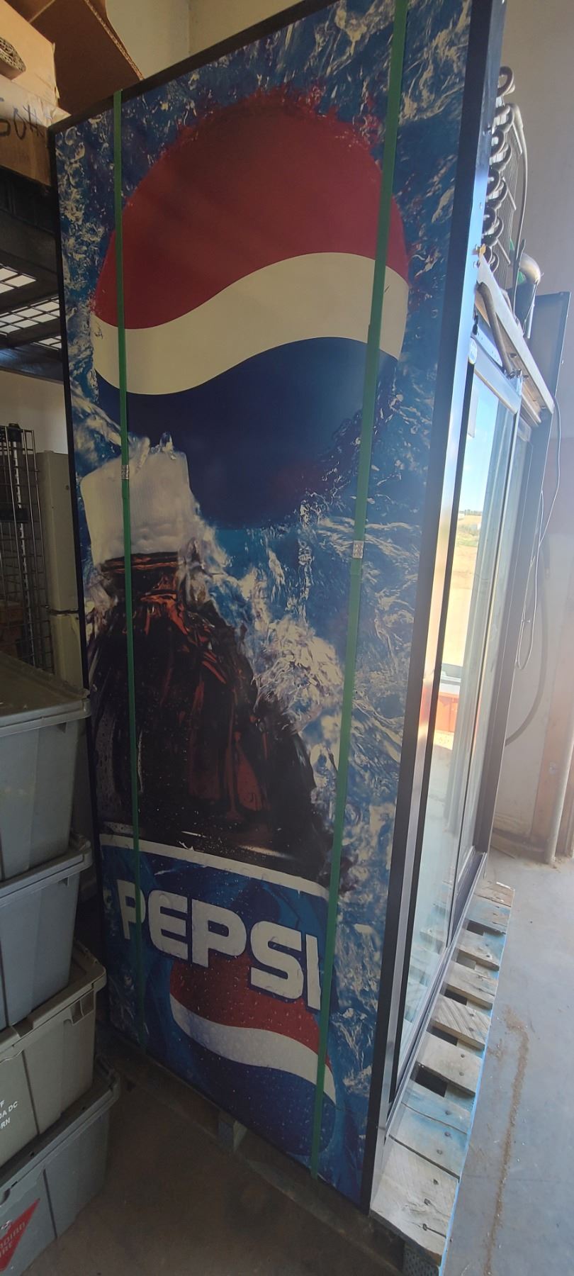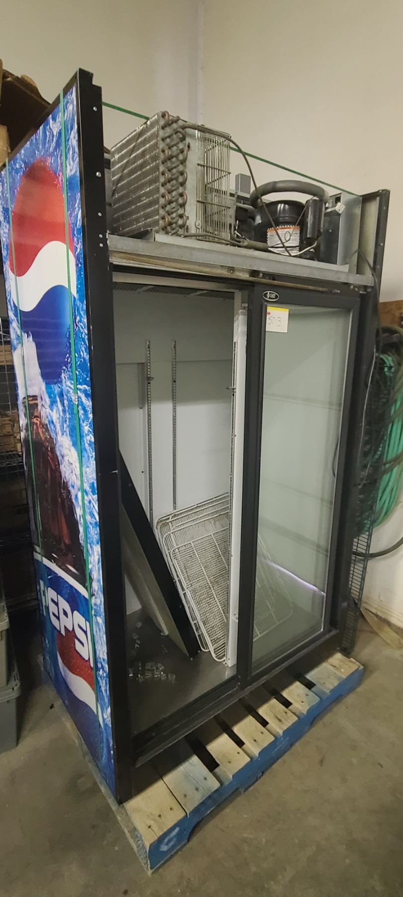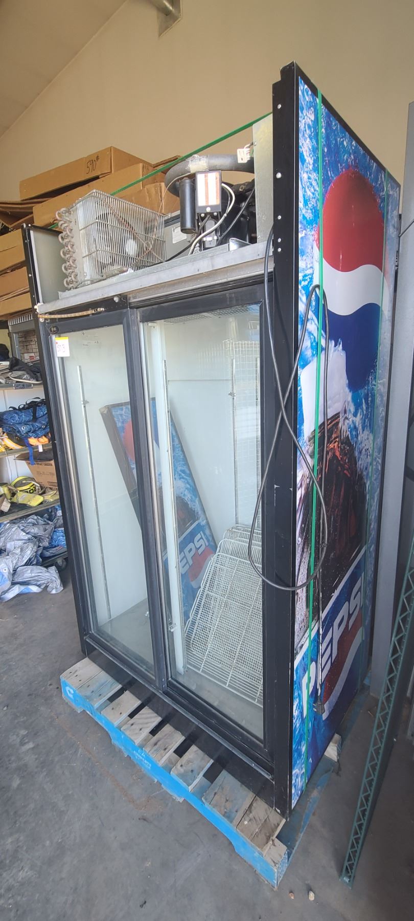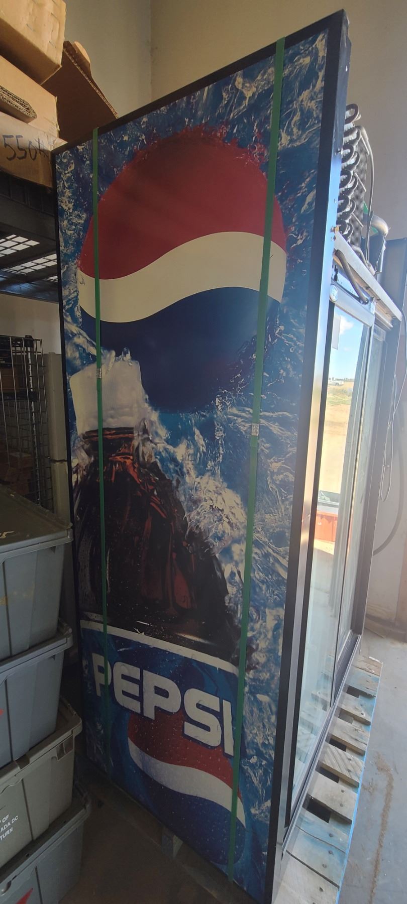 COMMERCIAL DOUBLE GLASS DOOR PEPSI FRIDGE - LOCATED IN DAYSLAND