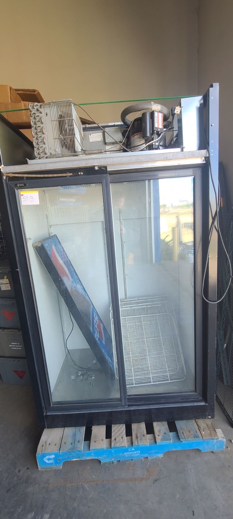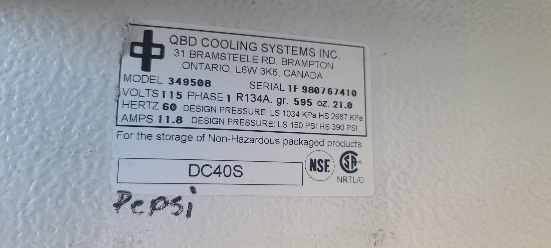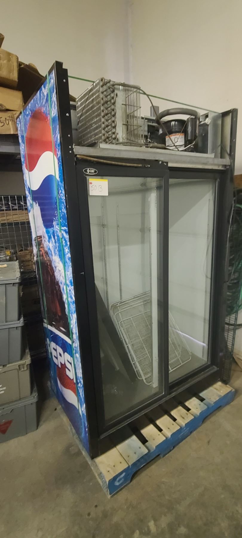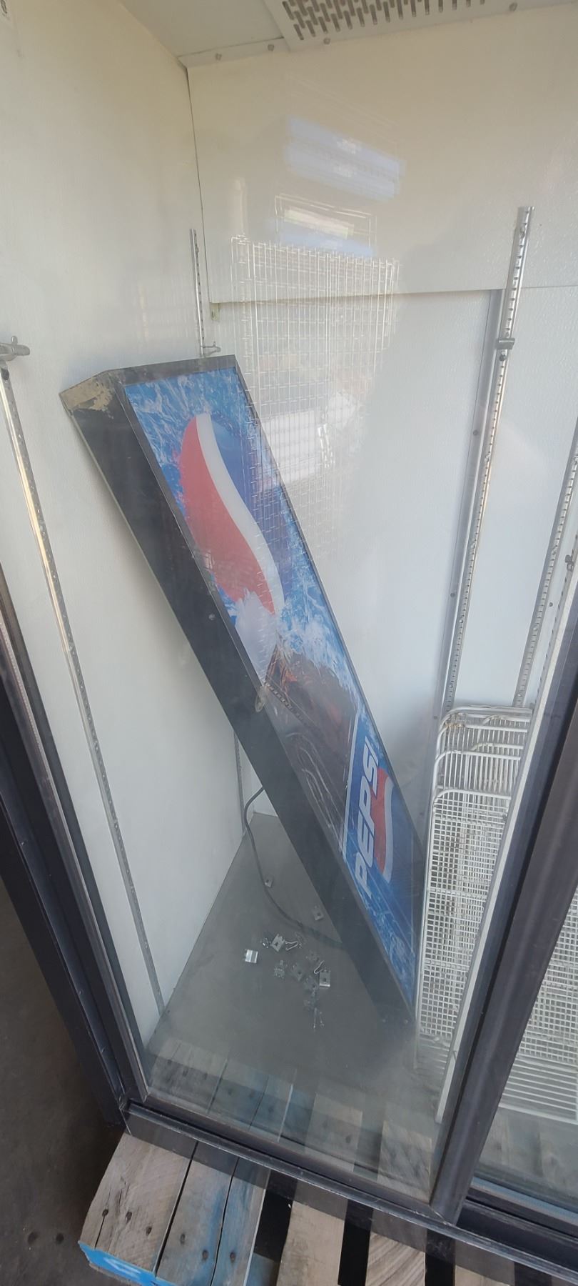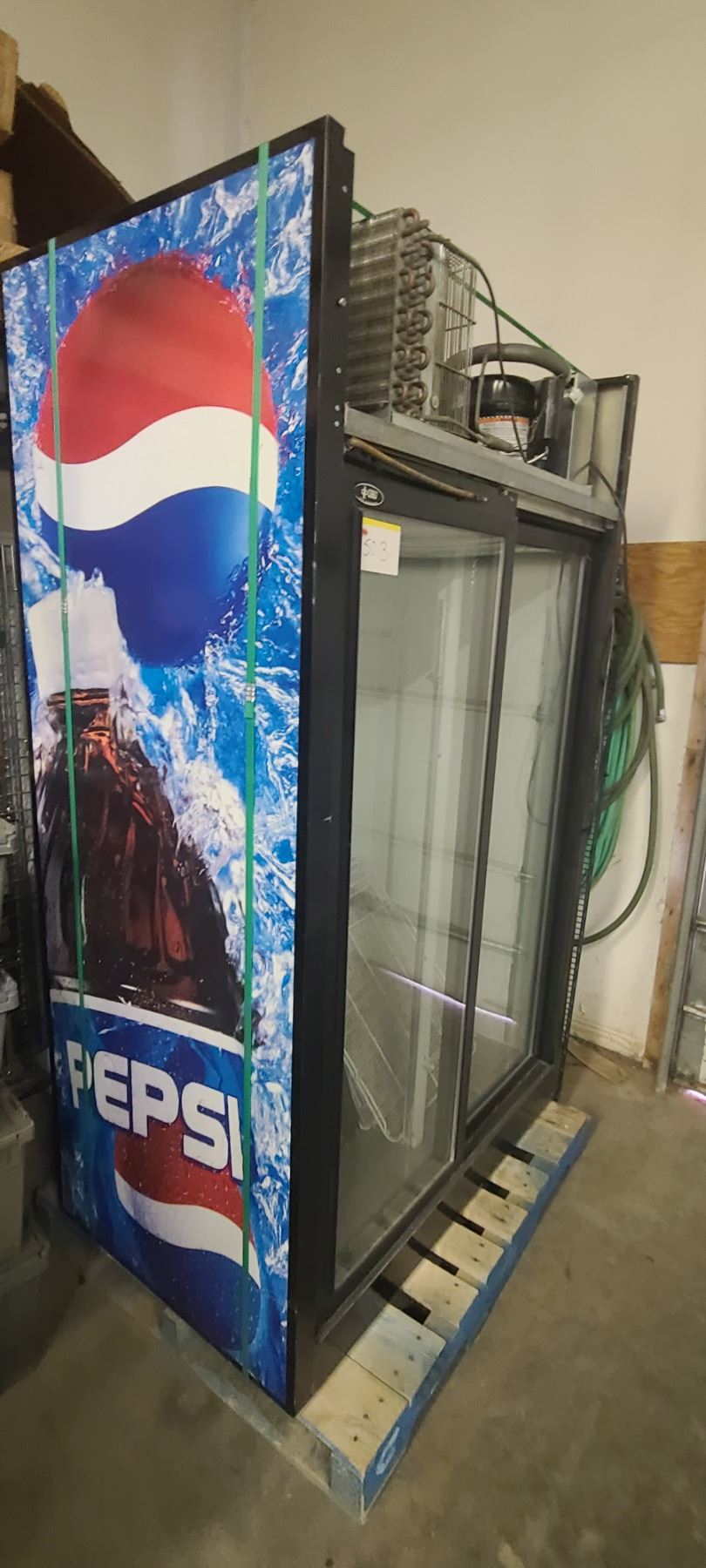 COMMERCIAL DOUBLE GLASS DOOR PEPSI FRIDGE - LOCATED IN DAYSLAND