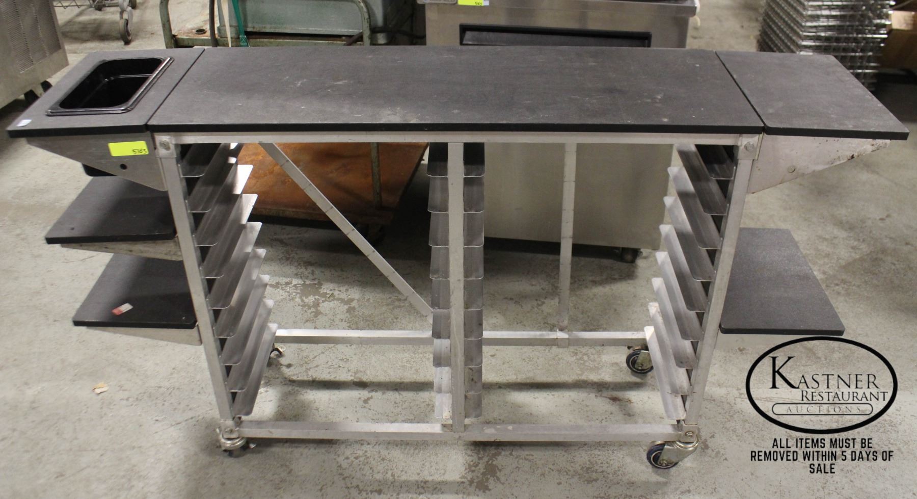 PANS. W/ SHELF EXTENSIONS, INTEGRAL 1/2-SIZE BUN PAN RACKS(HOLDS 18) ON CASTORS, 60" X 14" X 34" (W/ EXTENSIONS). **ALL ITEMS MUST BE REMOVED BY 5PM MONDAY, AUGUST 1ST, 2022. ALL REMAINING ITEMS WILL BE SUBJECT TO A $6.00 PER DAY STORAGE CHARGE. ANY ITEMS REMAINING AFTER MONDAY, AUGUST 15, 2022 WILL BE CONSIDERED FORFEITED. NO REFUNDS WILL BE ISSUED FOR FORFEITED ITEMS.** TO SCHEDULE A PICK UP APPOINTMENT CLICK HERE