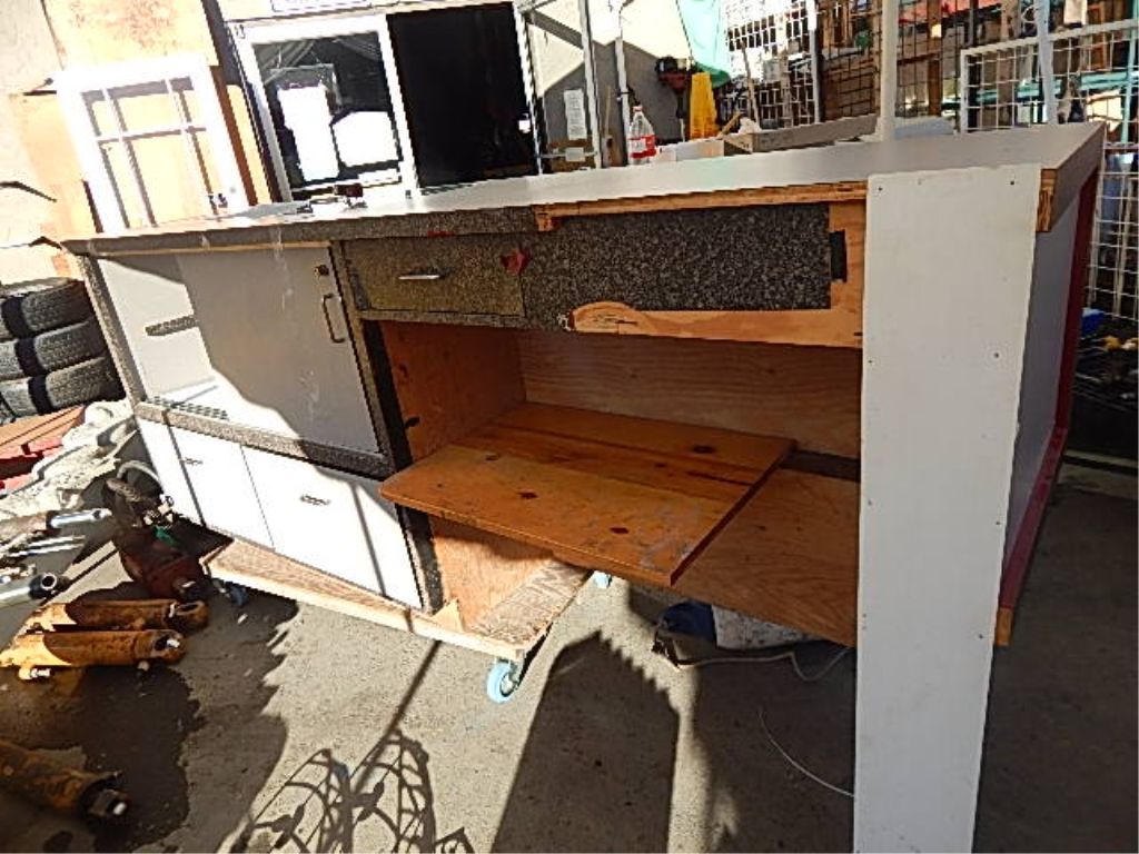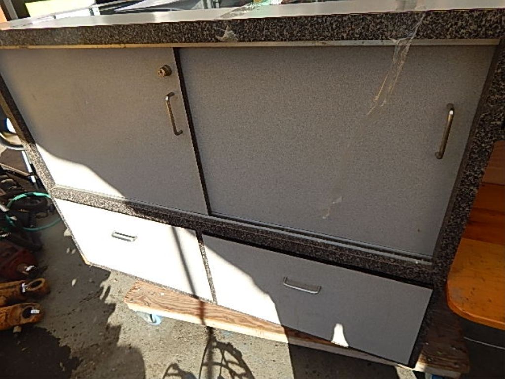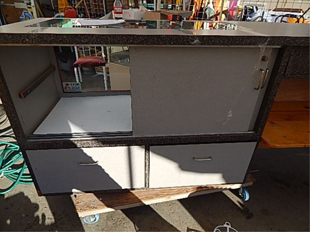 COMMERCIAL FRONT COUNTER - WITH SHOWCASE GLASS AREA - DRAWERS IN BACK - 8' X 251/4" X 39 3/4" H