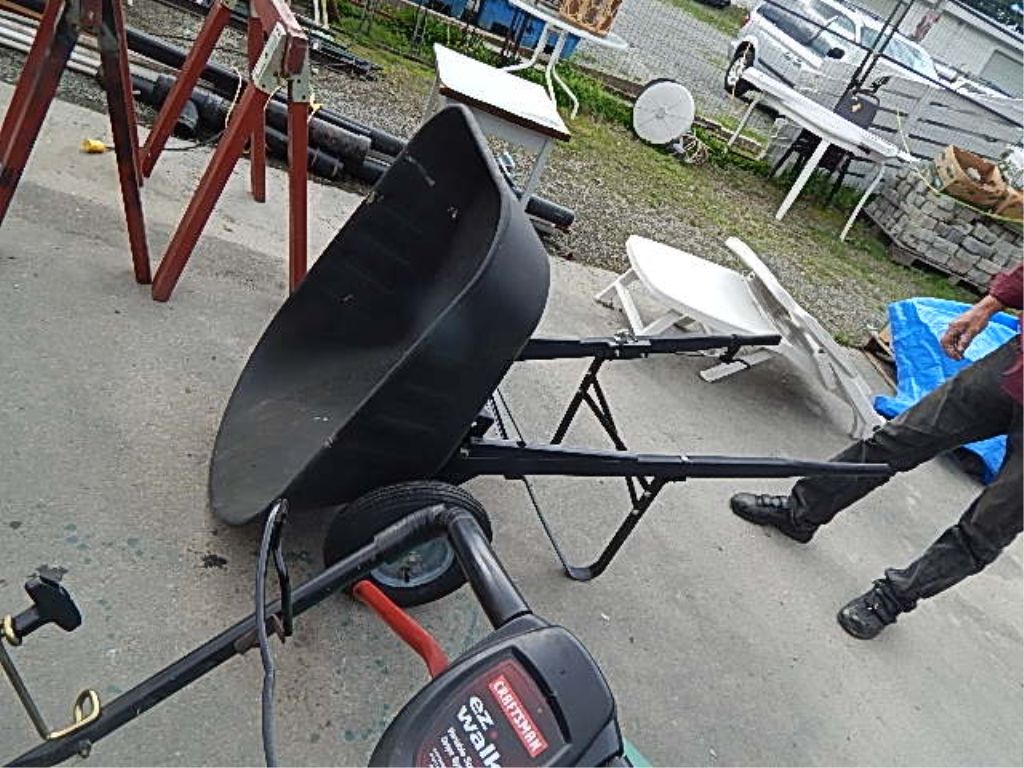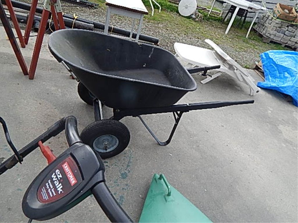 COMMERCIAL GRADE WHEEL BARREL - PLASTIC BASIN - TIPPING (USE HANDLE TO RELEASE ) - HAS 2 WHEELS - RETAIL OVER $200 - EXCELLENT CONDITION