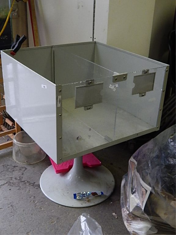 COMMERCIAL METAL STORE DISPLAY BIN ON PEDESTAL - GREY - CAN BE 1 OR 2 COMPARTMENT