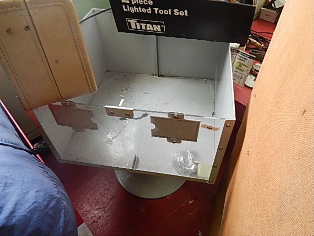 COMMERCIAL METAL STORE DISPLAY BIN ON PEDESTAL - GREY - CAN BE 1 OR 2 COMPARTMENT