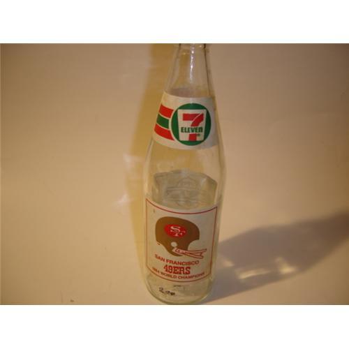 16.9 FL OZ. COMMEMORATIVE BOTTLE. SEVEN ON ONE SIDE AND THE OTHER IS COKE. SUPER BOWL XIX CHAMPIONS. THE 49ERS AND DOLPHINS. THIS WILL A GOOD COLLECTIBLE DUE TO THE OZ AND IT HAS COKE AND SEVEN UP ON IT AND THE SCORE OF THAT GAME.
