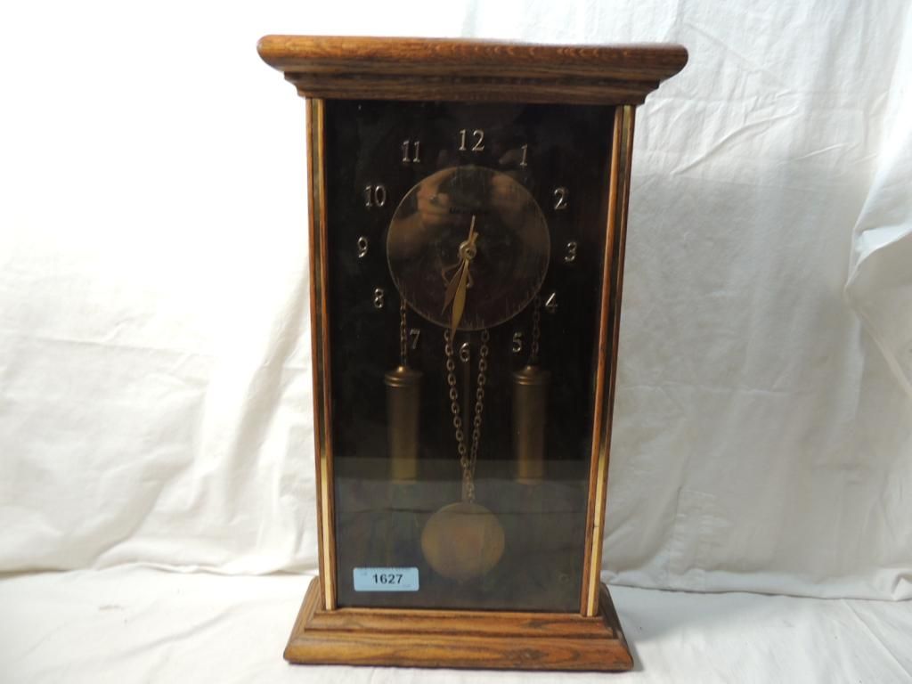 WOODEN FRAME PENDULM WALL CLOCK COMMODORE VINTAGE WALL CLOCK. AS SHOWN SEE PHOTO FOR MORE DETAILS.