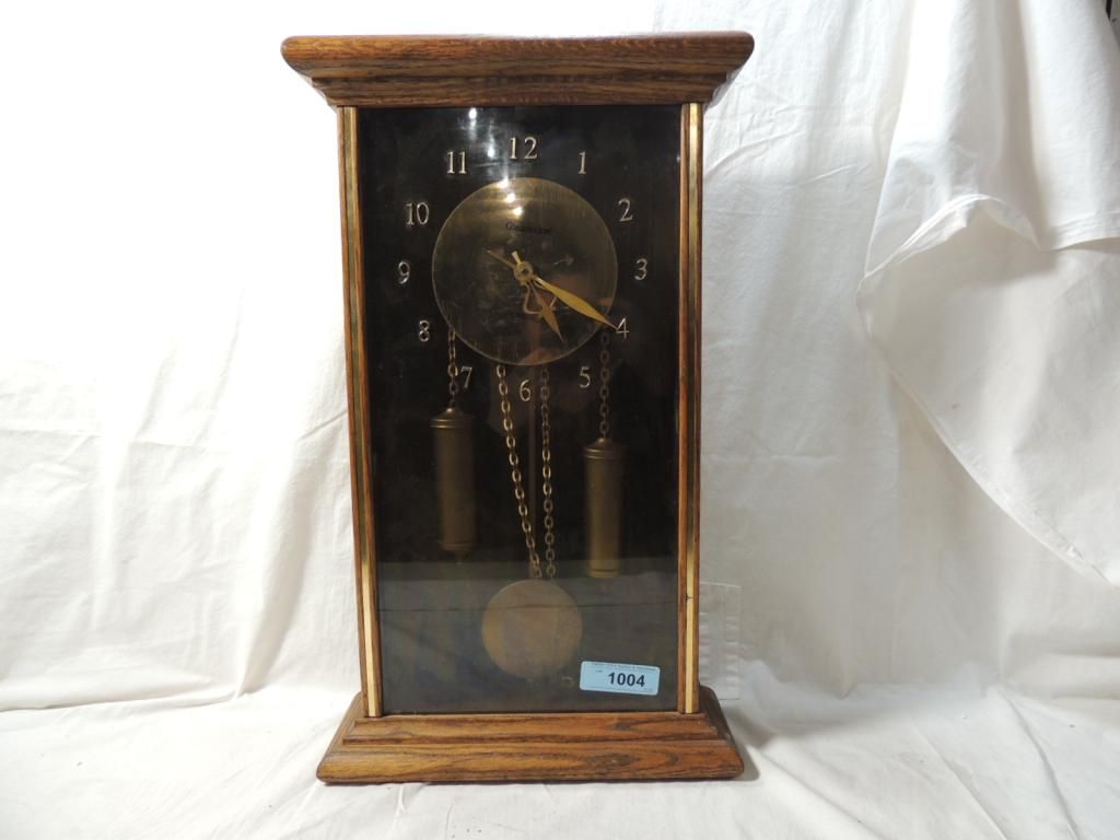 WOODEN FRAME PENDULM WALL CLOCK COMMODORE VINTAGE WALL CLOCK. AS SHOWN SEE PHOTO FOR MORE DETAILS.