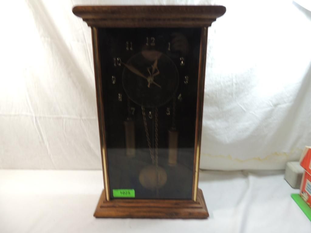 WOODEN FRAME PENDULM WALL CLOCK COMMODORE VINTAGE WALL CLOCK. AS SHOWN SEE PHOTO FOR MORE DETAILS.