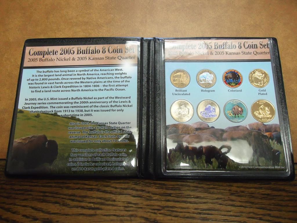 2005 BUFFALO NICKELS AND 2005 KANSAS STATE QUARTERS, BU, (HOLOGRAMED), COLORIZED AND GOLD PLATED