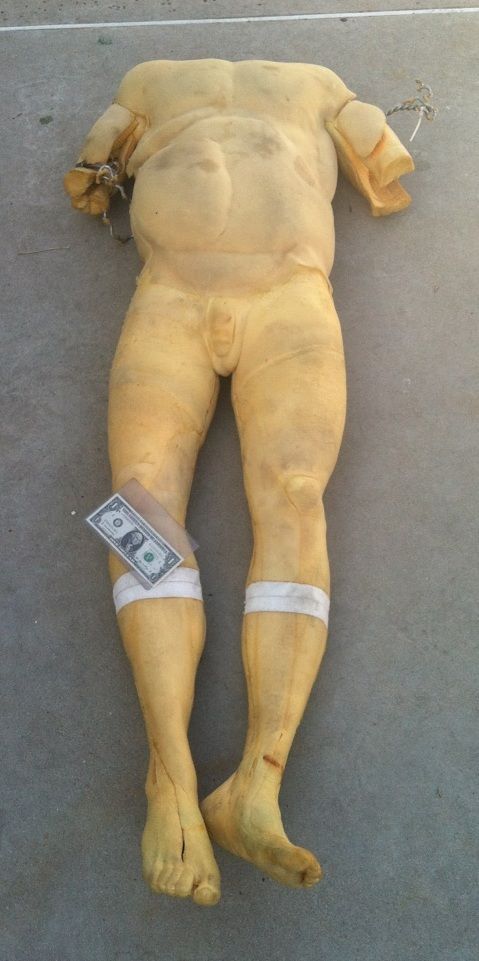 This is a complete armatured male corpse poly foam body for use in your Haunt or Indy Film. Put some clothes and blood on it and here is your money shot.